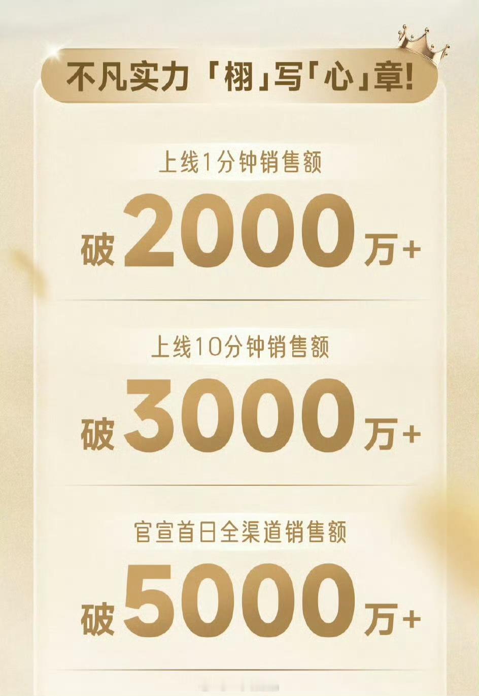心相印官方发布田栩宁官宣日超级战报1分钟销售额破2000万10分钟销售额破300