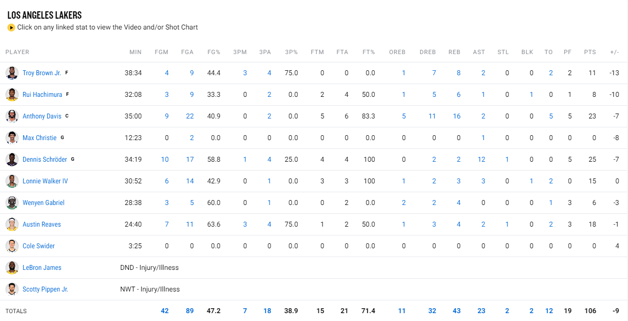 FBI提到的跟湖人有关的涉嫌赌球假球的比赛。讲道理,看不出什么东西。NBA
