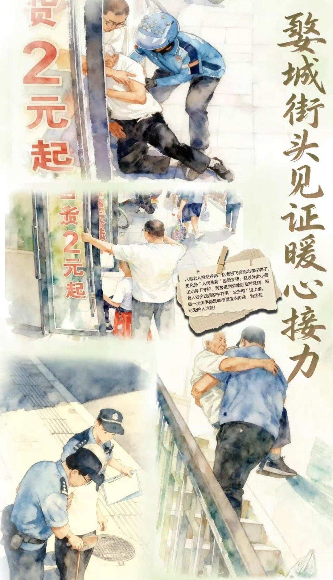 八旬老人不慎摔倒,店老板和外卖小哥第一时间伸出援手。一个扶起,一个当“人肉靠背”温暖支撑。民警火速赶到,用“公主抱”将老人平安送回家。这场爱心接力,完美诠释了金华的温度!