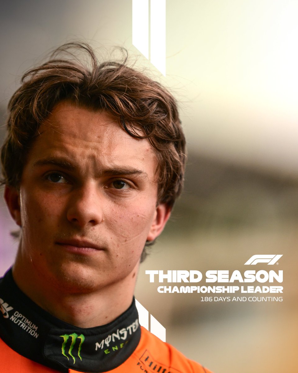 F1官方推特账号报道,我们的冠军领跑者自四月起一直稳居榜首#F1@OscarPiastri