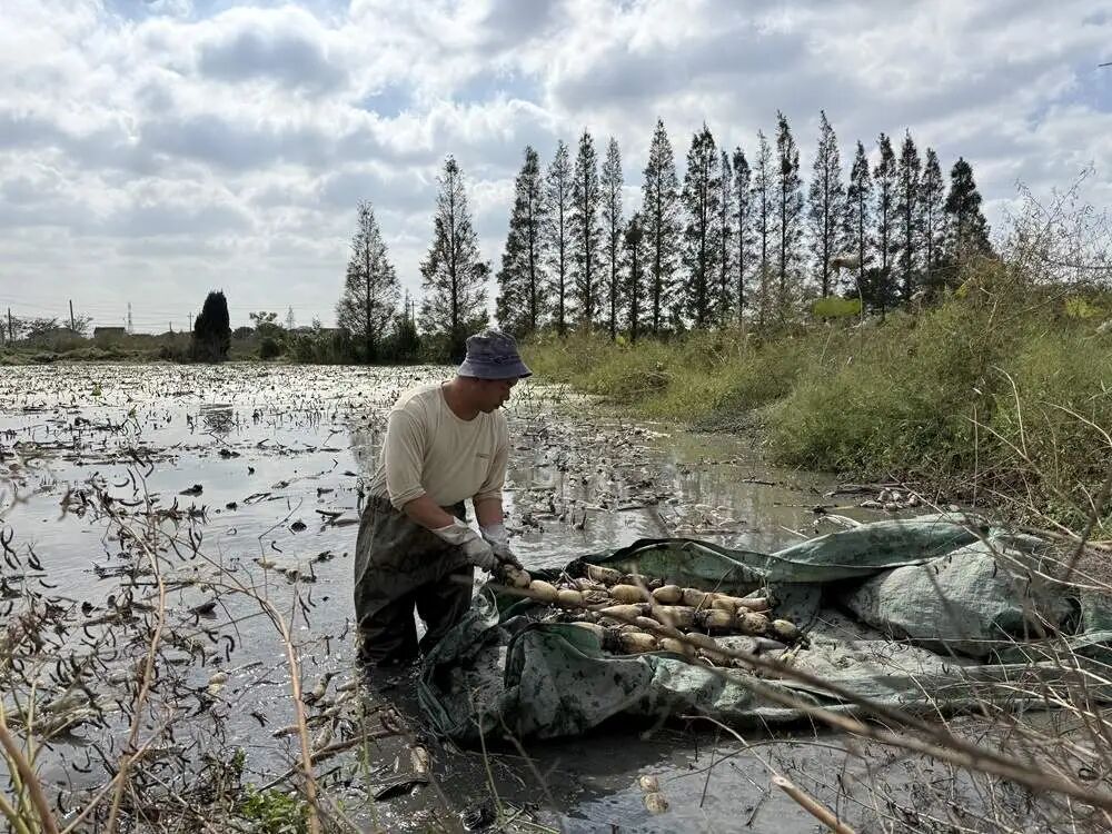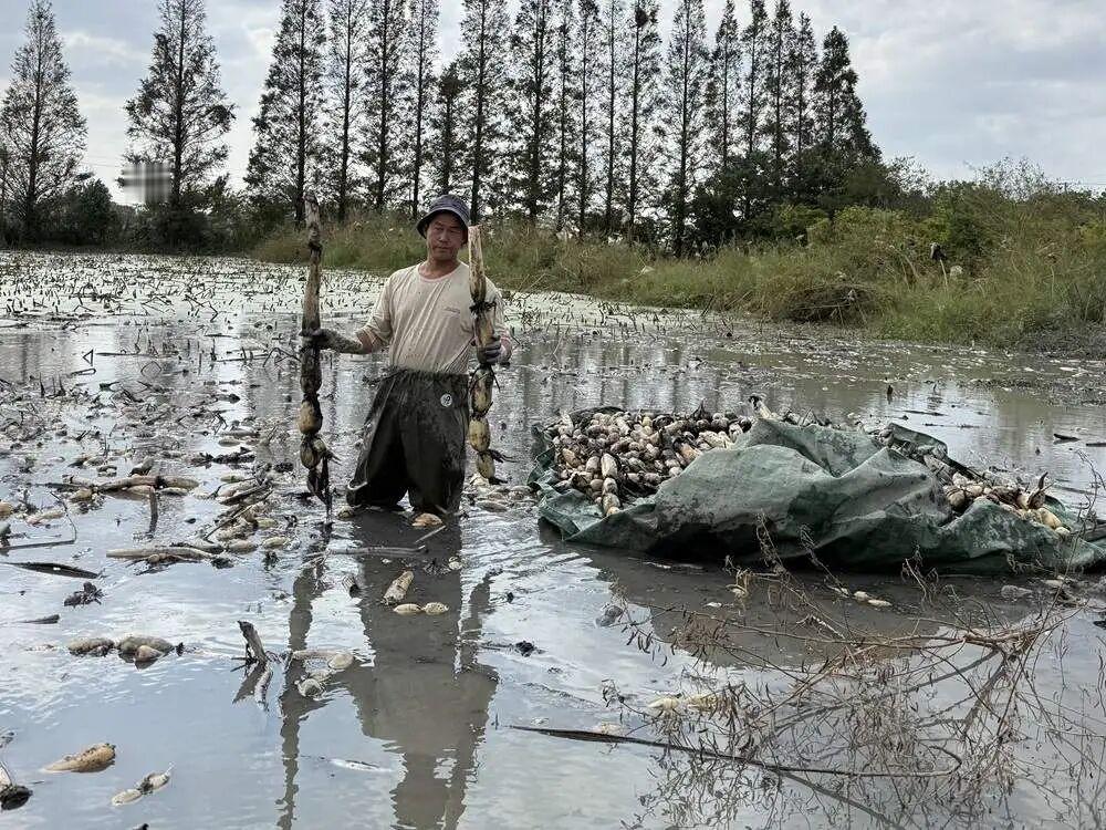 金秋时节,天气渐凉,嘉兴各地的藕田里,夏日郁郁葱葱的荷叶虽已褪去往日生机,但在泥土之下,饱满的莲藕正孕育着藕农们一整年的希望。藕农们纷纷抢抓农时,下田采挖,田间地头处处洋溢着丰收的喜悦。