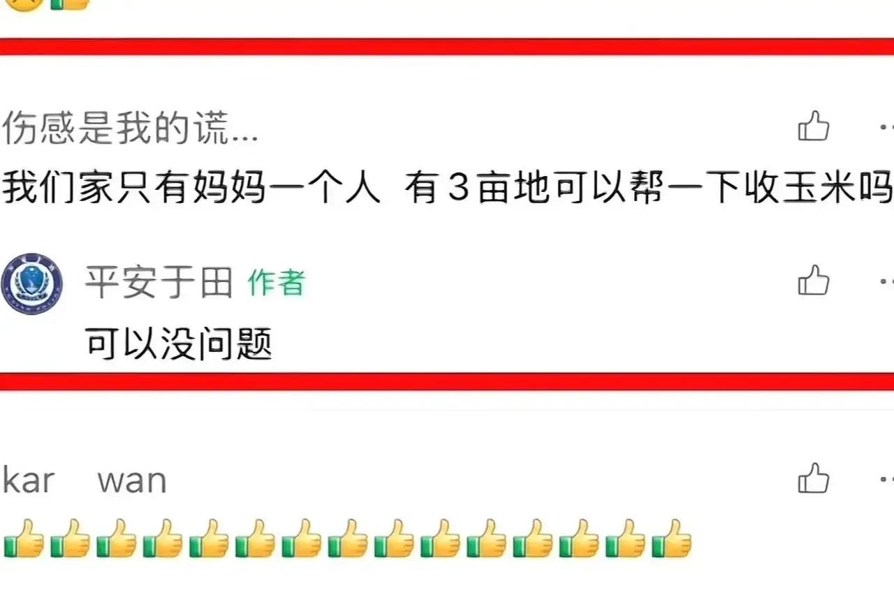 大学生在外地上大学,最担心家里年迈的父母,这不,新疆于田县的一位大学生就因为秋收问题犯了难,没想到他向派出所求助后,竟然收获了全网点赞! 原来,这位大学生在外地上大学,眼看着秋收时节到了,他担心母亲一个人难以完成秋收,于是试着给于田县的民警留言求助。没想到,民警们看到留言后,不仅没有忽视,反而迅速行动起来。他们来到大学生母亲的玉米地里,二话不说就开始帮忙收玉米。民警们分工明确,有的负责掰玉米,有的负责装袋,还有的负责搬运,整个秋收过程井然有序。小李的母亲做梦都没想到,民警们会亲自过来帮她收玉米,她紧紧地握着民警们的手,激动得说不出话来,只是不停地说着感谢的话:“你们真是太好了,太谢谢你们了!”这一幕被网友拍下并传到网上后,迅速引发了热议,大家纷纷为民警们的暖心举动点赞。 于田公安用实际行动诠释了 “为人民服务”的真谛,他们的善举不仅温暖了小李一家,更温暖了全网人的心。这样的正能量,值得我们点赞和转发,大家快来评论区说说你的感受吧!你怎么理解“为人民服务” 怎么更好的为人民服务