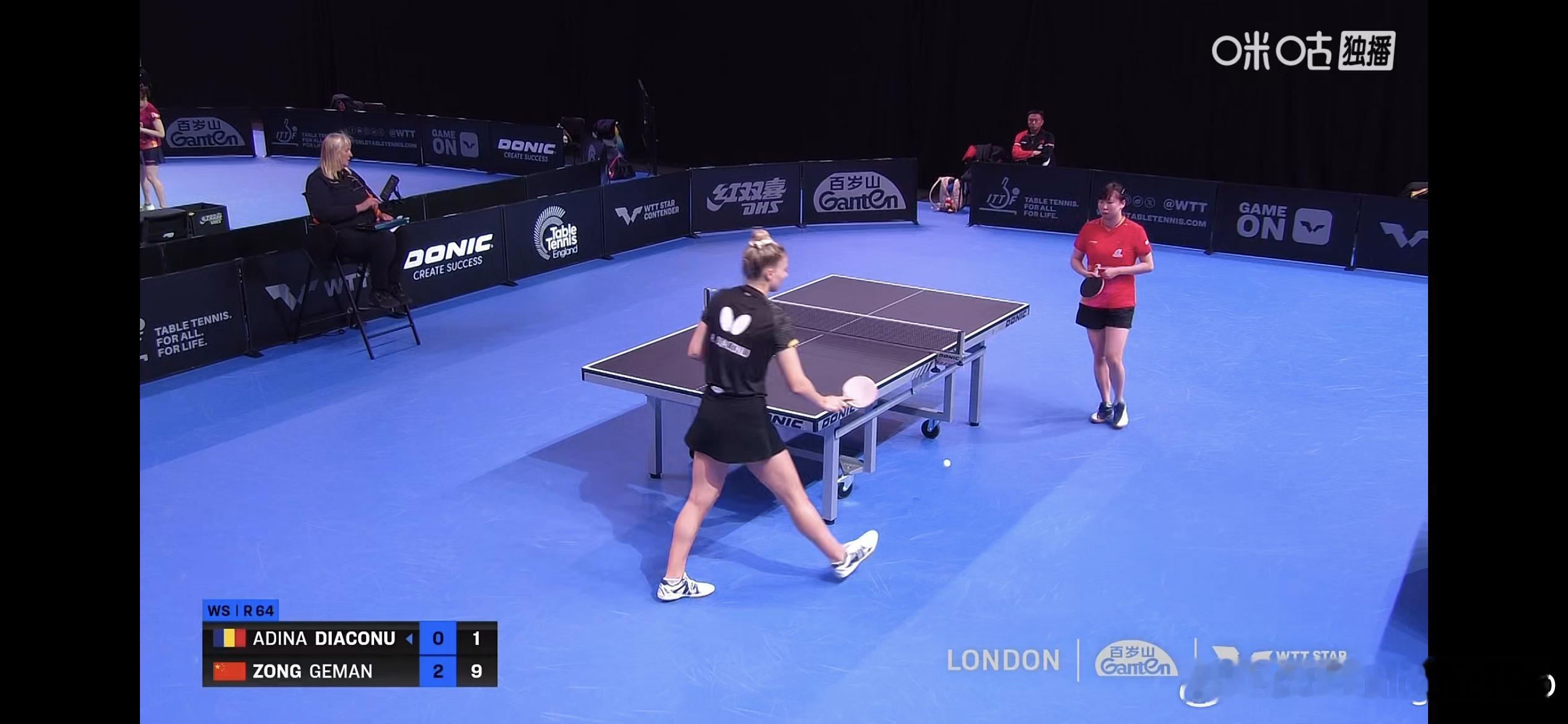 WTT球星挑战赛伦敦站2025 女单1/32決赛:🇨🇳纵歌曼3比0阿迪娜·迪