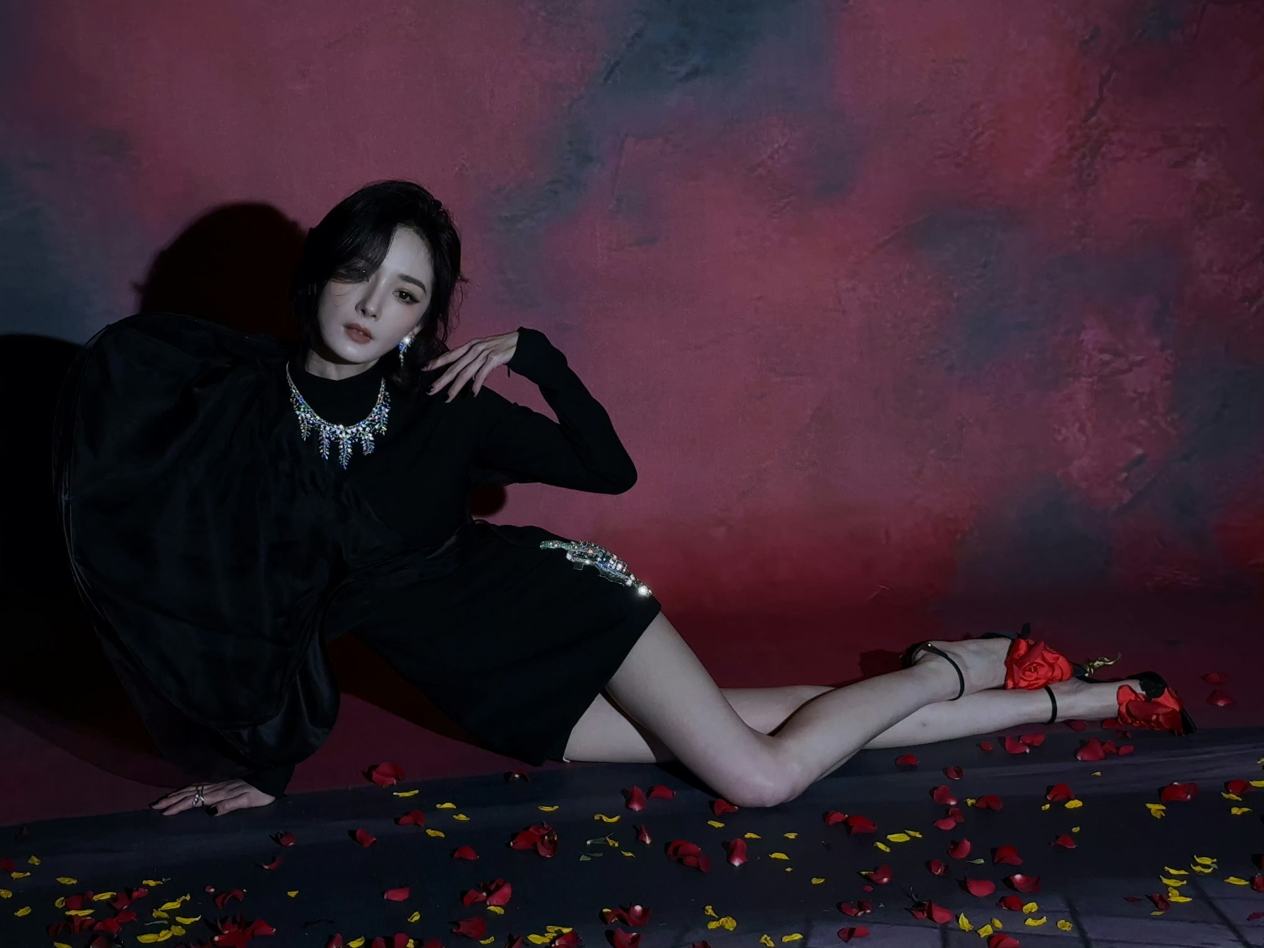 今晚vogue盛典田曦薇赢麻了!她这一身以玫瑰花为主题的礼服造型,真的是