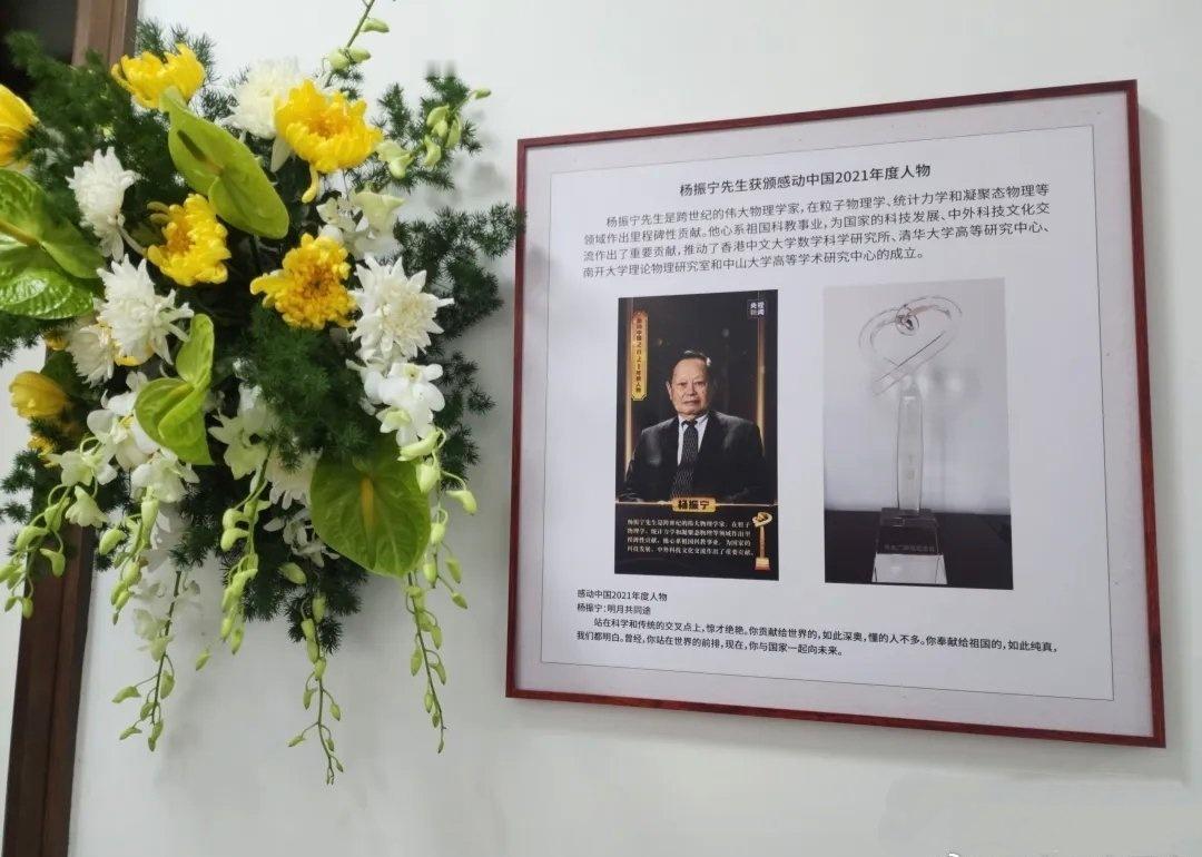 深秋的清华园里,高等研究院红墙上的爬山虎渐次泛红,远远地就看到楼梯过道布满鲜花。身份验证签名后,手持一支素菊步入119室,凉意裹挟着菊香扑面而来。杨振宁先生的遗像眼含笑意,注视着墙上的照片无声诉说着百年传奇,轻缓的音乐寄托着送别的哀思——感慨与如此伟大的科学家曾生活在同一时代。