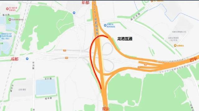 路线1:通过龙港互通→龙潭收费站→龙港路→三环路→龙潭立交→成南立交→十陵立交→成洛大道→成洛枢纽→G4202成都绕城高速公路;
