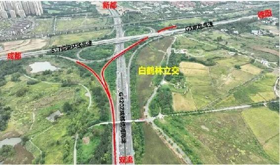 路线2:通过白鹤林立交→G5京昆高速公路→SA2成都第二绕城高速公路→G5013渝蓉高速公路→成洛枢纽→G4202成都绕城高速公路。