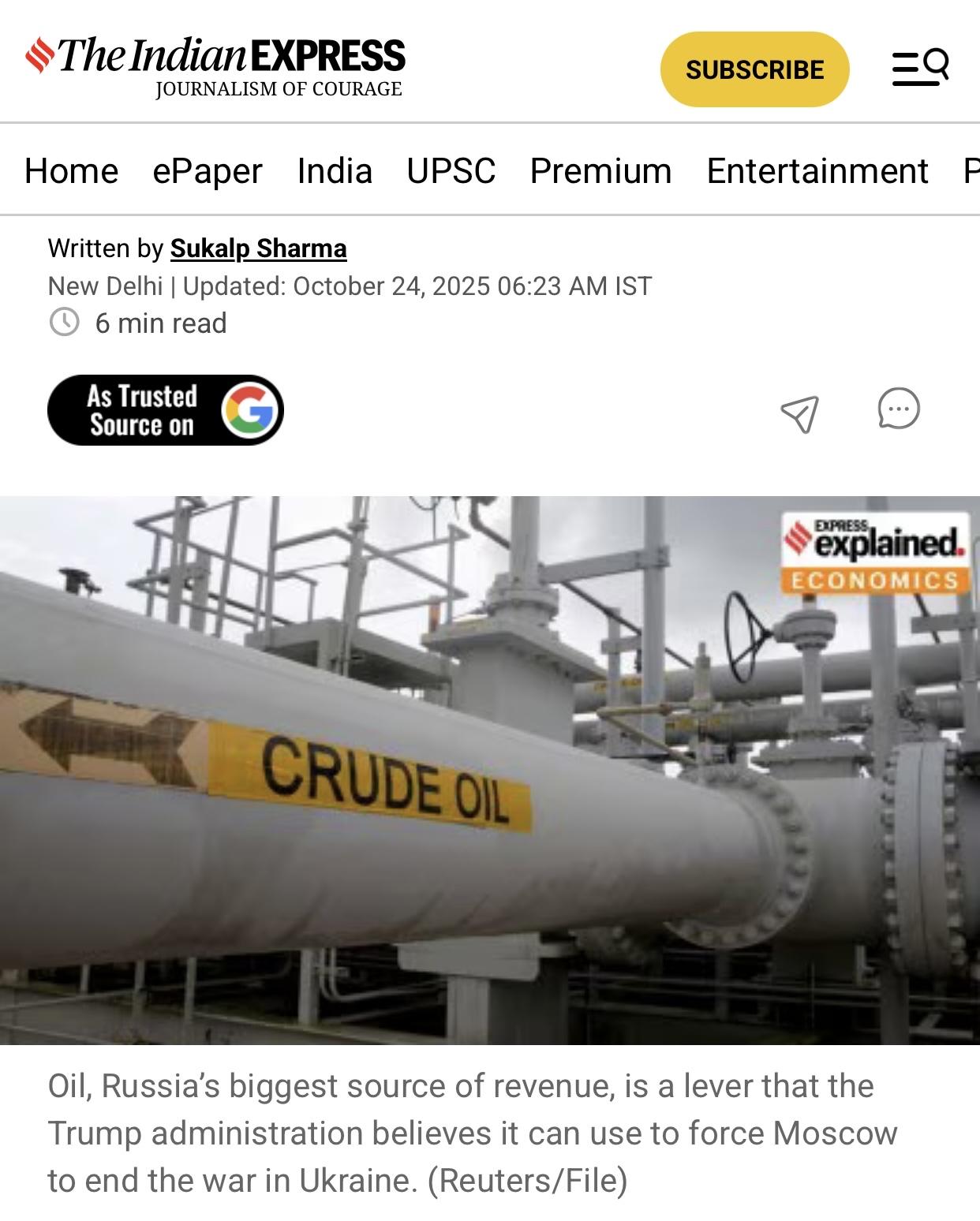印媒:印度从俄进口石油料大幅下降 印度《印度快报》官网10月24日报道:业内人士和专家周四告诉《印度快报》,在美国对俄罗斯石油巨头俄罗斯石油公司(Rosneft)和卢克石油公司(Lukoil)实施制裁后,印度从其最大的供应商俄罗斯进口的石油可能会大幅下降。 报道说,尽管现在估计美国制裁的实际影响还为时过早,但业内人士表示,印度政府所有的炼油厂已在评估合规风险,以确保他们今后购买的俄罗斯石油不会直接来自俄罗斯石油公司、卢克石油公司及其众多子公司。印度银行方面预计也会避免与受制裁实体进行交易,以避免招致华盛顿的二次制裁。 报道的原标题是《Curbs tighten tap, leave India with headroom to taper off Russia crude》(限制措施收紧供应,印度仍有空间逐步减少俄罗斯原油进口)。