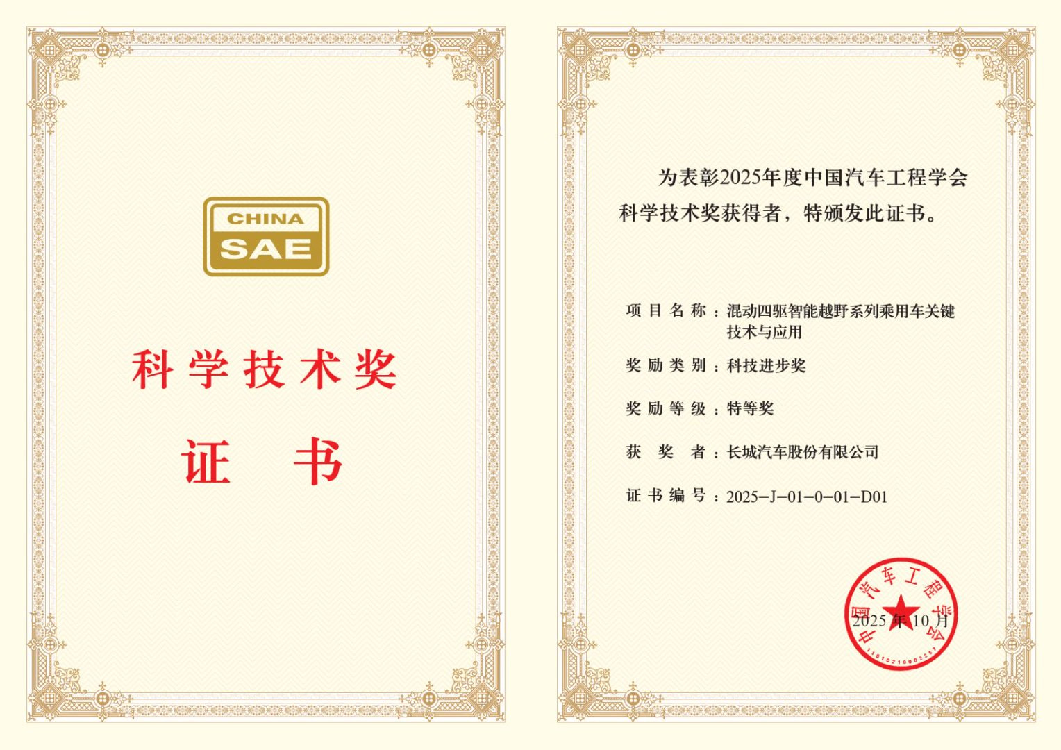 上证报中国证券网讯(记者俞立严)长城汽车《混动四驱智能越野系列乘用车关键技术与应用》项目日前荣获中国汽车工程学会科学技术奖特等奖。长城汽车方面介绍,此次公司Hi4混动技术体系获得学会科技进步奖特等奖,是中国汽车工程学会科学技术奖设奖30余年以来首次为混动技术颁发特等奖。