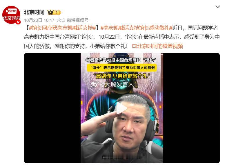 热点观点 ,高志凯喊话支持馆长感动敬礼,馆长回应获高志凯喊话支持
