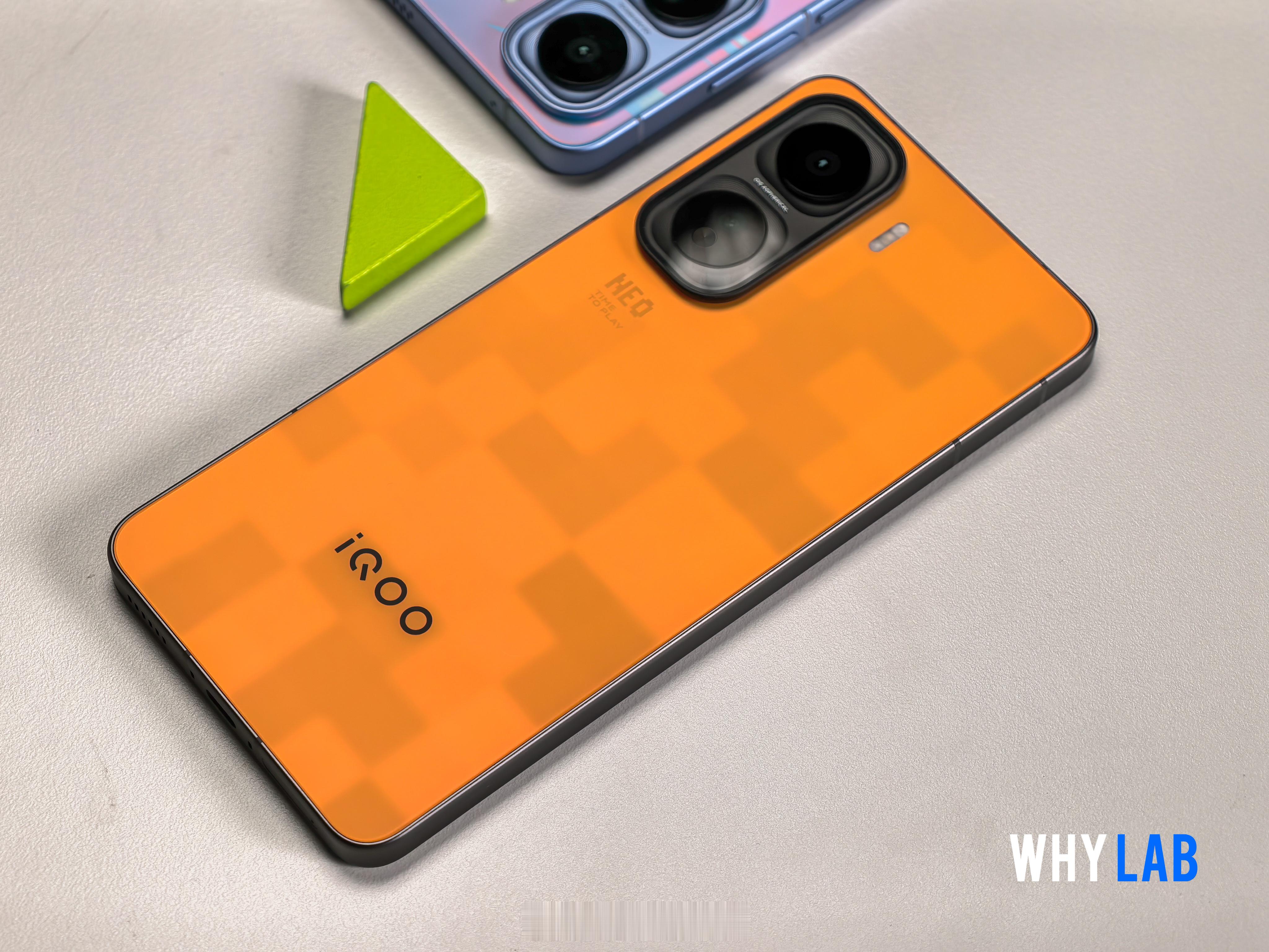 iQOO 的 Neo 系列,在外观设计上,我一直觉得都是挺有玩趣的,这次也不例外,尤其是新配色面对疾风,用上了芯片级光刻与光学镀膜工艺,配色从蓝到粉随光而变;像素方橙则是爱酷经典的 8bit 像素风。