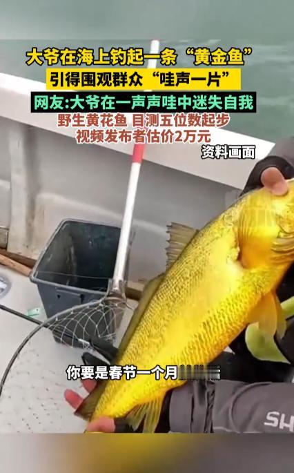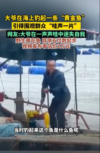 “简直赚翻了!”10月23日,福建,一大爷海钓钓上来一条“黄金鱼”,他笑得合不拢嘴,这条鱼通体泛着金光,引得围观群众惊呼出声,有人估算这条鱼价值2万元!网友:半年不开张,开张吃半年! 对很多钓友们来说,钓上一条名贵的鱼至少能吹半年,不仅能炫耀,转手一卖还能收获一笔意外之财。 一大爷坐船到海上海钓,察觉到有鱼上钩,他赶忙往回拉,等到鱼儿靠近船边后,大爷拿起抄网将鱼捞了上来,看着眼前这条独特的鱼,他一时呆住了。 只见这条鱼通体金黄,鳞片泛着金光,远看就像是一个黄金工艺品,大爷仔细辨认,惊奇地发现这竟然是一条野生大黄鱼,他激动不已。 要知道,人工养殖的大黄鱼都价格不菲,更别说野生的了,野生大黄鱼极难捕捞,可以说是有价无市,售价基本上都在3000-4000元/斤,逢年过节价格更高,大爷钓上来的这条个头还不小,有人估价2万元。 这条“黄金鱼”瞬间吸引了围观群众的目光,很多人是第一次见到野生大黄鱼,在一声声惊呼中,大爷逐渐迷失自我,笑的嘴都合不拢了。 不少网友表示,这就是半年不开张,开张吃半年,大爷的运气也是逆天,居然能钓到野生大黄鱼,这下可赚翻了! 信息来源:《大爷在海上钓起一条“黄金鱼”引得围观群众“哇声一片”,视频发布者估价2万元》极目新闻