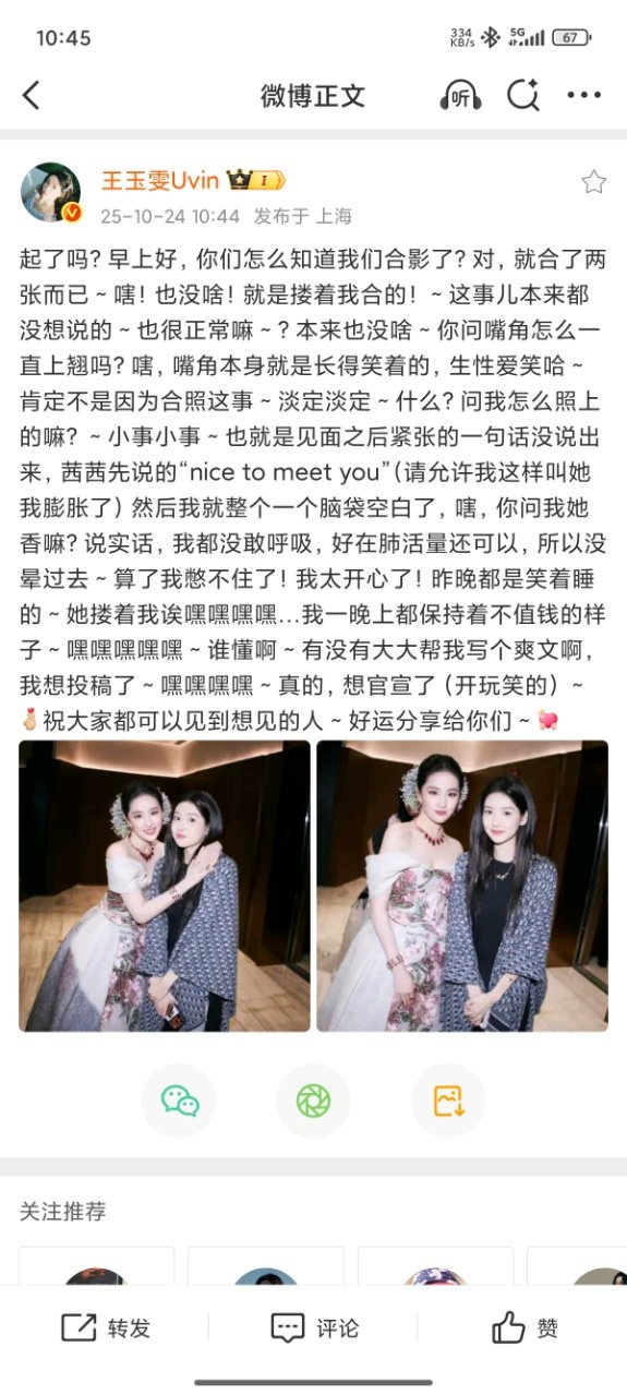 王玉雯晒与刘亦菲合照刘亦菲王玉雯合照 王玉雯晒与刘亦菲合照啦