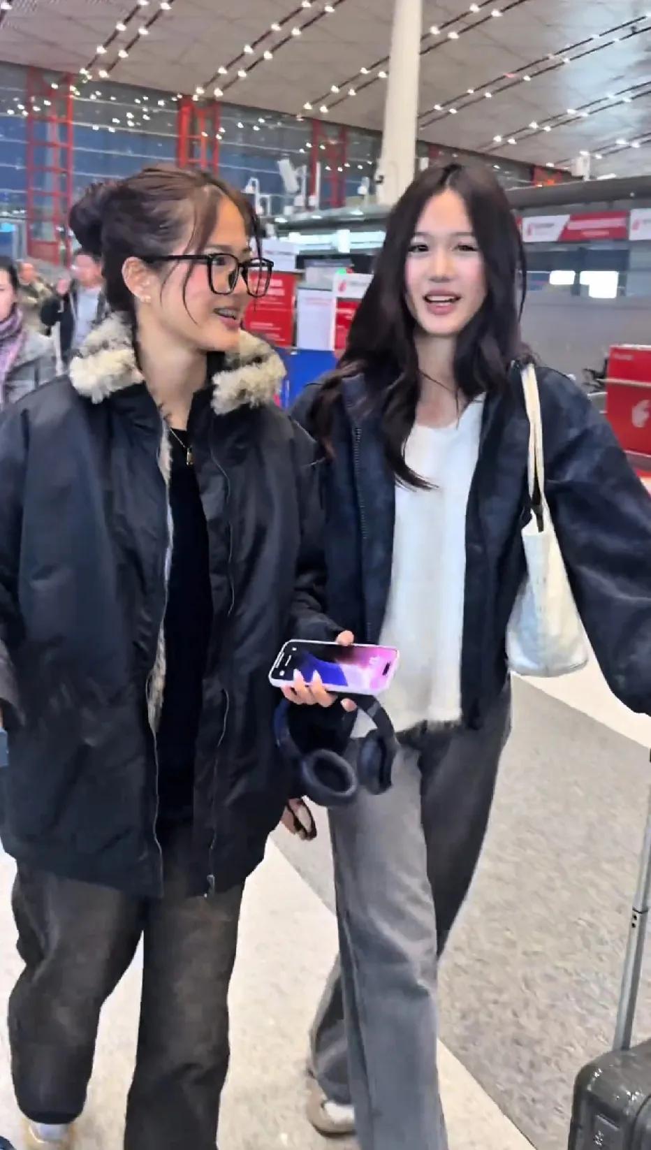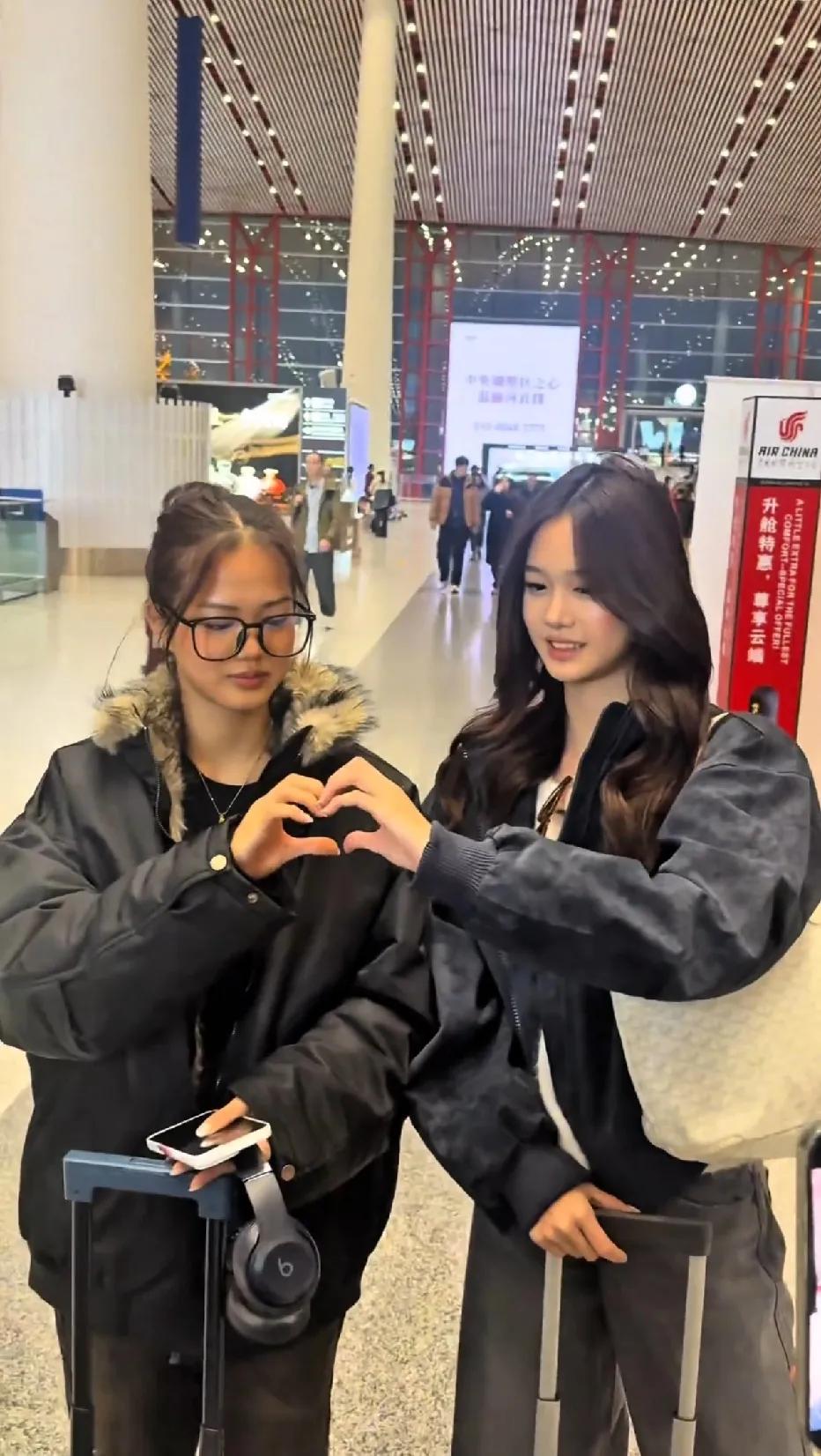 钟丽缇俩女儿机场狂比心!本以为星二代高冷,结果被甜到了 印象里星二代都高冷范儿?钟丽缇两个女儿Jaden和考拉在机场彻底颠覆了——不仅没躲镜头,反而主动对粉丝疯狂“饭撒”比心,笑的超甜,姐妹俩一路推行李一路笑眯眯,大方挥手送爱心,亲和力十足。这哪是豪门千金出街,分明是邻家姐妹花的秋游现场。所以啊,谁说星二代都有距离感?她们用最甜的比心证明:褪去光环,真诚和快乐才是最好的“圈粉”神器。钟丽缇两个女儿机场饭撒比心 钟丽缇女儿 宝贝女儿合照 考拉lisa