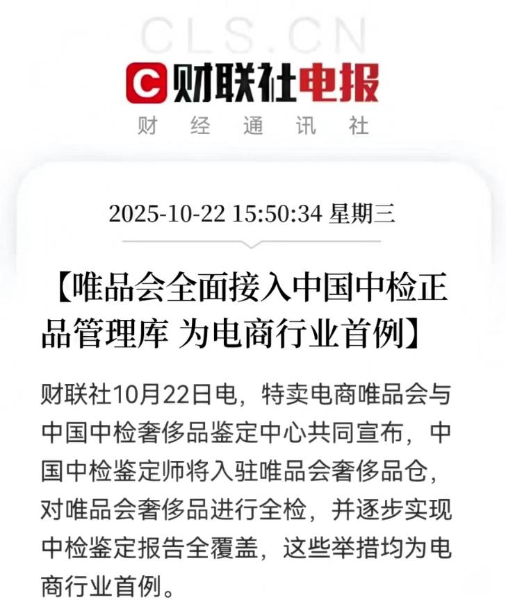 电商行业曝出一个大消息,双11迎来最大变数! 10月22日,中国中检宣布,入驻唯品会奢侈品仓,对所有高端消费品进行全检,实现一物一鉴一报告。什么意思?也就是说,未来你在唯品会买的任何一个奢侈品,都在卖给你之前,就已经进行了全检鉴真,打上了中检的标。 说真的,这事儿太关键了,尤其是对咱们想买奢侈品又怕踩坑的人来说,简直是天大的好消息。 先说说中国中检到底是个啥来头,这可不是普通的小检测公司,是正经国务院批准的中央企业,国资委直接管的,妥妥的“国家队”。 搞奢侈品鉴定快十年了,累计鉴了近千万件东西,海关、公安办案都认它的报告,这公信力还有啥可怀疑的? 以前有人说自己懂鉴定、有报告,好多都是糊弄人的,但中检不一样,它的鉴定师证特别难考,十个人里未必有一个能过,有人考七次才拿到证,专业度根本没得挑。 再说说唯品会这波操作到底是咋回事,就是中检直接把鉴定师派到唯品会湖州、郑州那两个奢侈品仓库里去了,不是偶尔来看看,是常驻! 而且不管是包袋、手表、珠宝还是高端酒水,只要是高端消费品,一件不落全得检。 鉴定的时候可不是瞎看,高倍显微镜、红外光谱仪这些尖端设备全用上,还得三个持证的资深鉴定师交叉检查、盖章,最后给每一件东西都弄个“身份证”——专属的鉴定报告和码,以后你在唯品会买奢侈品,收到货就能拿到这份中检的报告,扫码就能查真伪。 以前咱们买奢侈品多闹心啊,专柜怕贵,网上买又怕假,去年假货市场都快2000亿了,假货能见度是真货的6倍,想想都吓人。 就说唯品会,以前总有人嫌它卖得便宜,比如三折的Burberry包,评论里全是“价格低到揪心”,怕买到假货。 平台再怎么解释是买手从国外淘的、有授权、免税叠加的折扣,也没人信,毕竟平台又当卖家又当裁判,说破天也难让人踏实。 更别提以前网购奢侈品,真出了疑问,还得自己找地方鉴定,费钱费力不说,还未必能维权成功,完全是被动的“事后求证”。 但现在不一样了,中检直接把关口搬到了售前,也就是说,东西还没卖给你,国家认可的权威机构就已经替你把过关了,确认是真的才会出库。 这可是行业头一回,以前电商顶多搞搞抽检,或者让商家自己送检,哪有像这样让国家级机构驻仓全检的?等于直接把“售后求证”变成了“售前鉴真”,从根上堵死了假货的路。 为啥说这是双11最大的变数?你想啊,每年双11大家都想买点好东西,但奢侈品这一块一直是观望的多、下手的少,核心就是怕买到假的。 现在有了中检这层保障,大家心里的石头落地了,肯定更敢下单。 而且这一下就把行业标准拉高了,其他平台看着能不急吗?以后说不定都得跟着这么干,整个电商奢侈品市场的规矩都得被改写。 对咱们普通消费者来说,这好处太实在了,以后买奢侈品不用再盯着价格瞎猜,也不用听平台自卖自夸,就看有没有中检的鉴定报告就行。 有这张报告,不仅买的时候放心,就算以后想转手,二手市场都更认,能多卖好几百块呢。 以前那种“便宜没好货”的老观念,这回真得改改了,唯品会那些折扣货,好多是买手从国外淘的尾货、免税品,本身成本就低,现在有了中检背书,便宜也能买到真东西了。 更重要的是,这事儿可不是作秀,中检在仓库里专门建了鉴定实验室,设备、人手全配齐,鉴定标准每年还得更新20%,就为了跟上假货的新花样。 比如鉴定茅台,得拿放大镜看有机码的数字,正品的“7”斜撇是直的,仿品就是弯的;看Coach包的马车LOGO,四条马腿必须在一条水平线上,差一点都不行。 这种较真的劲儿,才是真的为咱们消费者保驾护航。 说白了,这就是用国家信用给咱们的消费安全兜底。以前买奢侈品拼的是运气、是眼力,现在拼的是有没有中检的“身份认证”。 双11马上就到了,本来还犹豫要不要下手奢侈品的,现在有这保障,完全可以放心了。 这波操作真得给唯品会和中检点个赞,实实在在解决了咱们的痛点,以后网购奢侈品终于能踏实了。 参考资料: 金羊网《唯品会与中国中检奢侈品鉴定中心深化合作:开放高端消费品仓库,引入权威质检》