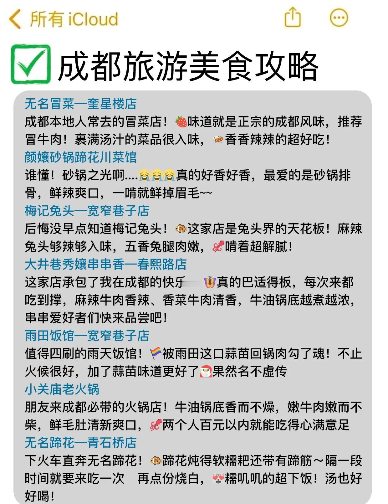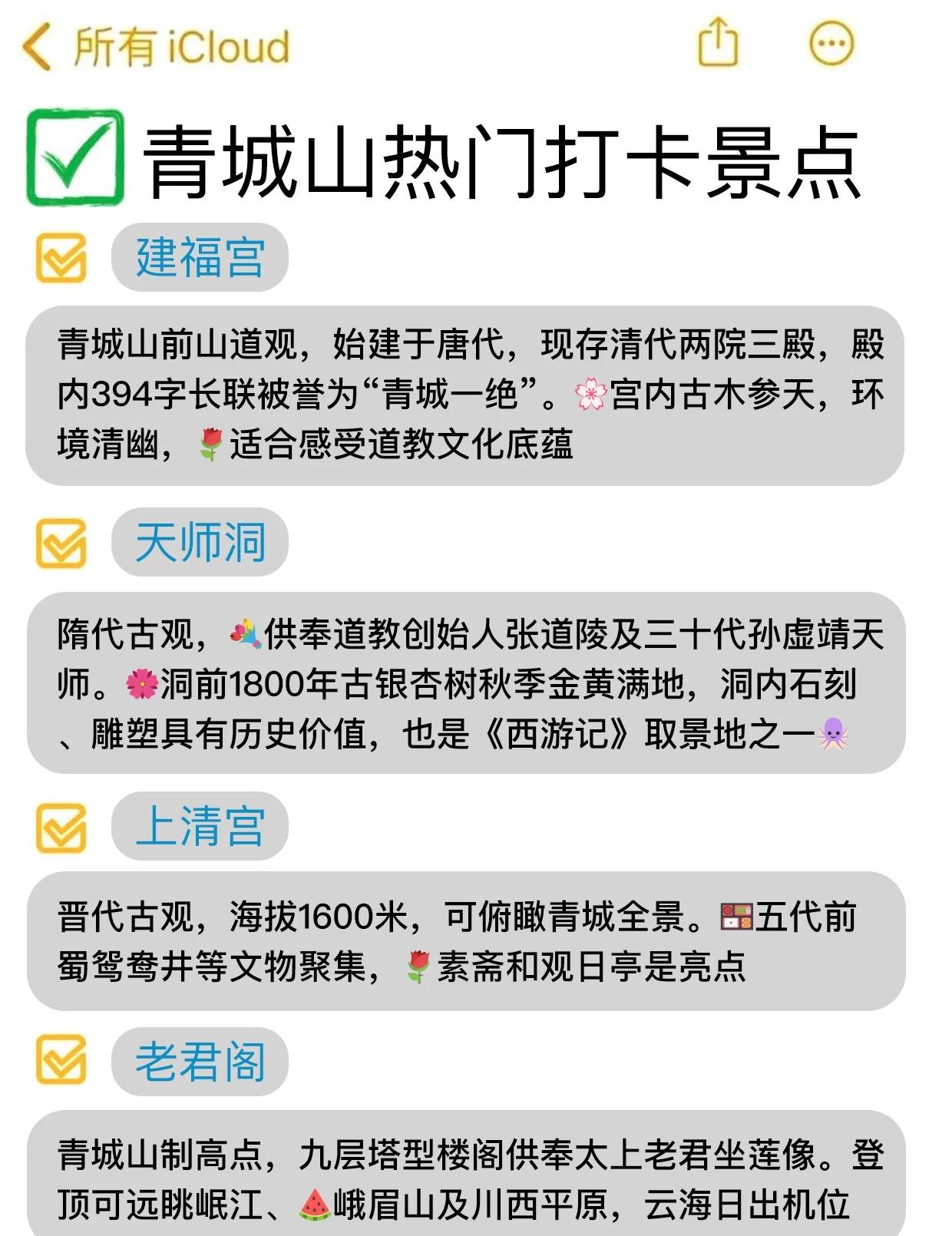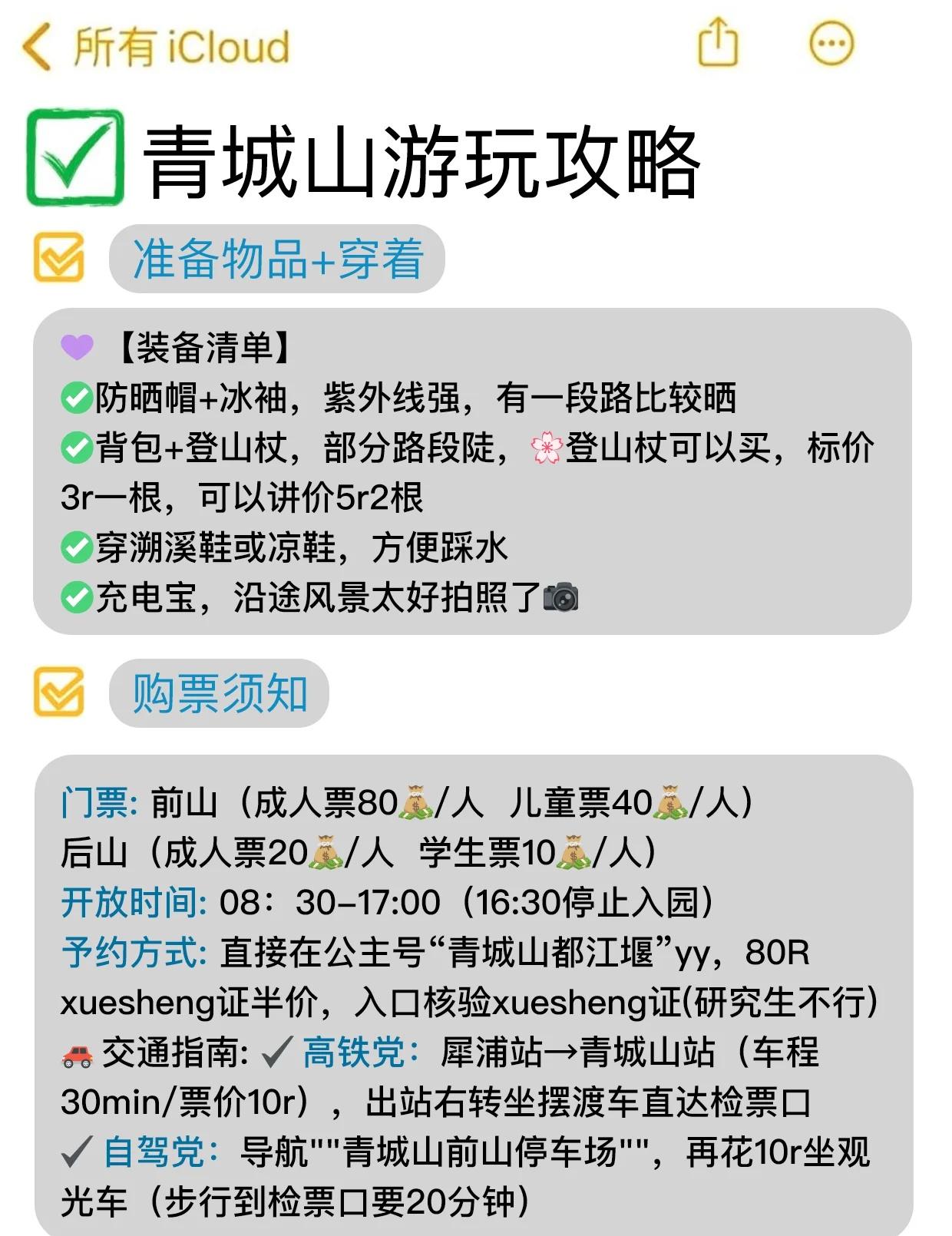 去青城山之前怎么没人告诉我… 去青城山要做好攻略啊,不然真的很容易踩雷😢,这次结合我的亲身经历给你们整理了下关于青城山的游玩攻略和成都美食推荐,大家还有啥想问的都可以吱声,能帮一个是一个!!! · 青城山 🔵交通: 🚄:成都犀浦站—青城山站(10/人) 在成都坐地铁到犀浦站,再换乘列车到青城山站,全程约30分钟,方便又快捷。 · 成都美食推荐 🌸无名冒菜—奎星楼店 成都本地人常去的冒菜店!味道就是正宗的成都风味,推荐冒牛肉!裹满汤汁的菜品很入味,香香辣辣的超好吃! 🌸无名蹄花—青石桥店 下火车直奔无名蹄花!蹄花炖得软糯耙还带有蹄筋~隔一段时间就要来吃一次😋再点份烧白,糯叽叽的超下饭!汤也好好喝! 🌸梅记兔头—宽窄巷子店 后悔没早点知道梅记兔头!这家店是兔头界的天花板!麻辣兔头够辣够入味,五香兔腿肉嫩,啃着超解腻! 🌸雨田饭馆—宽窄巷子店 值得四刷的雨天饭馆!被雨田这口蒜苗回锅肉勾了魂!不止火候很好,加了蒜苗味道更好了🥬