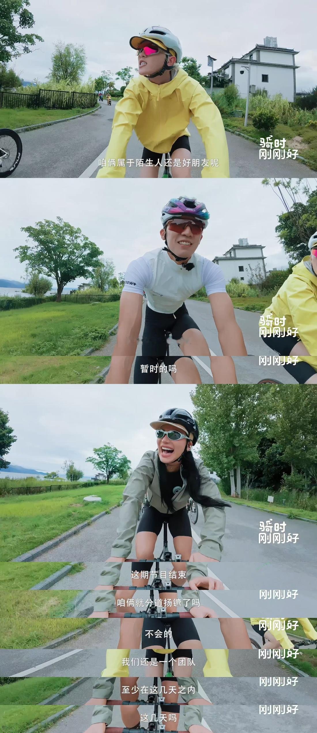 江映蓉左手魔丸右手灵珠 骑行届的冰与火之歌!张星特全程亢奋到能唤醒整座山,卢东旭安静得像在演默剧。被夹击的江映蓉发出灵魂总结:一边是社交悍匪,一边是静音美男,这组合我能笑一年!