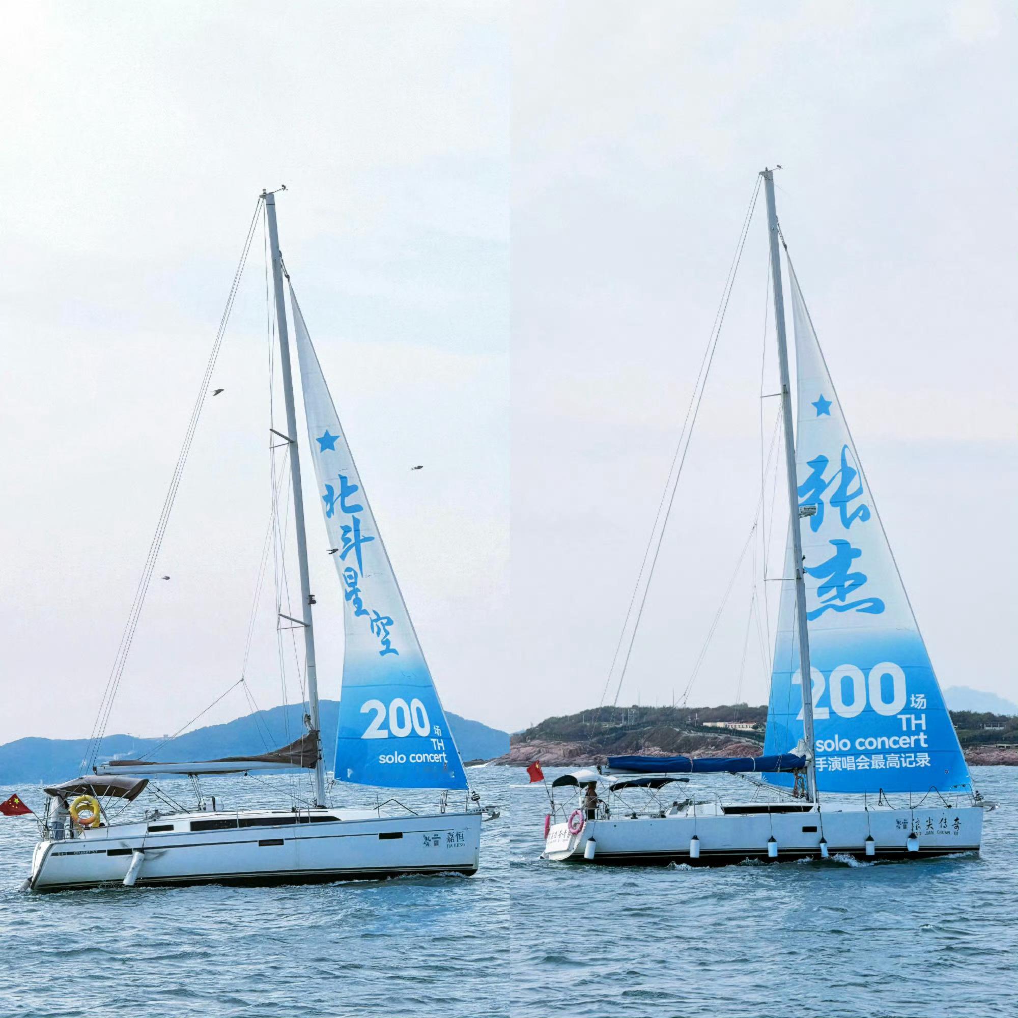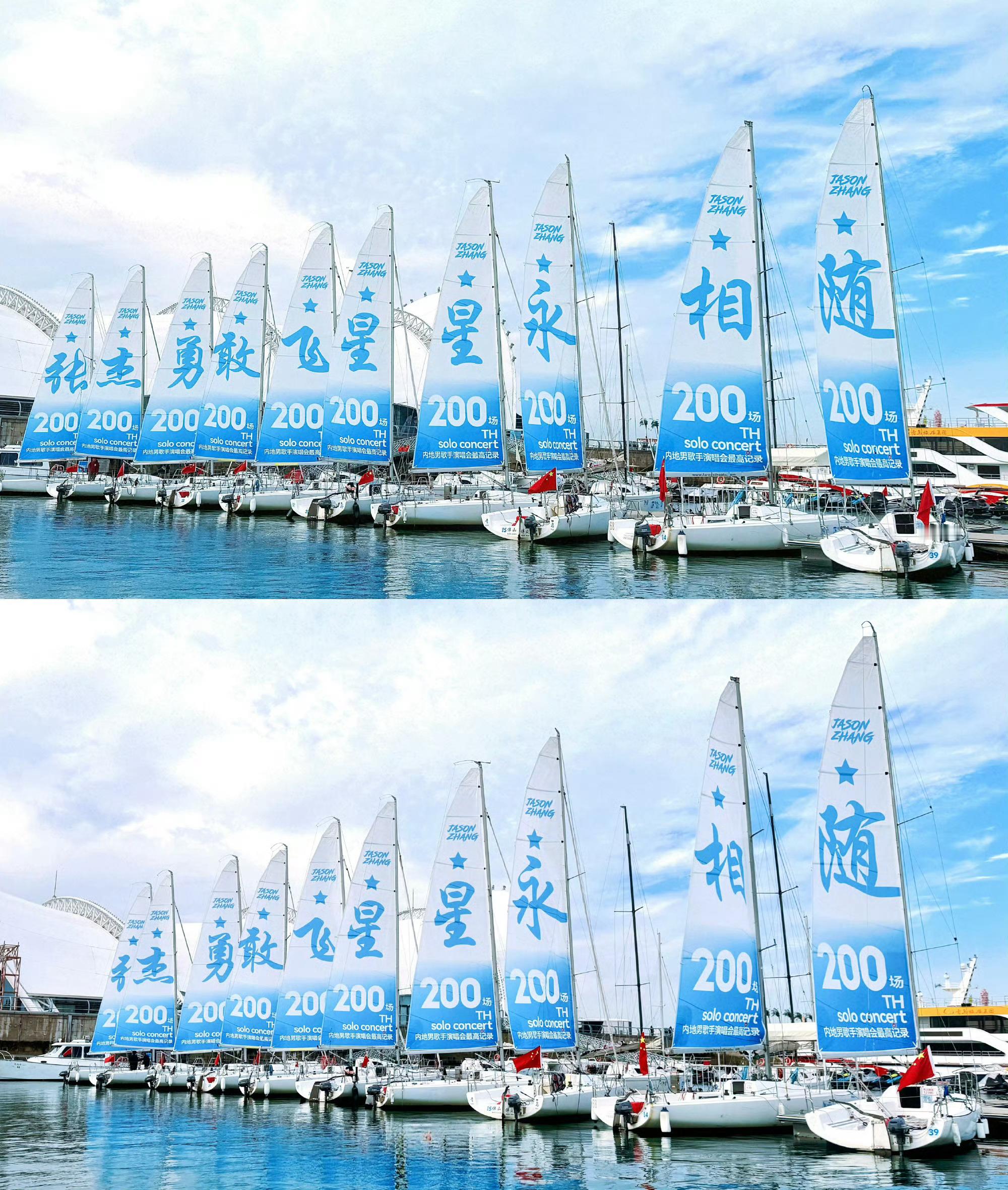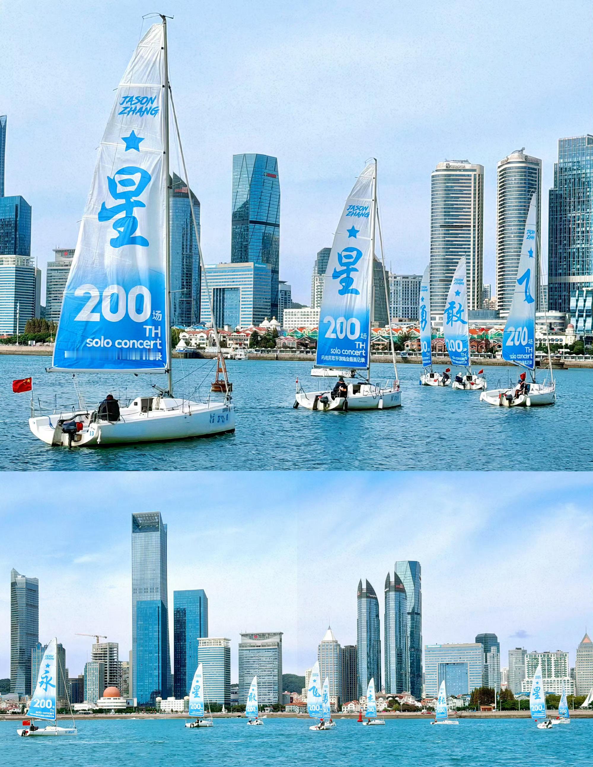 青岛海面上全是张杰 45艘帆船应援,刷新奥帆中心应援纪录,只为庆祝张杰第200场演唱会青岛演唱会打破内地歌手最高场次记录,排面浪漫⛵