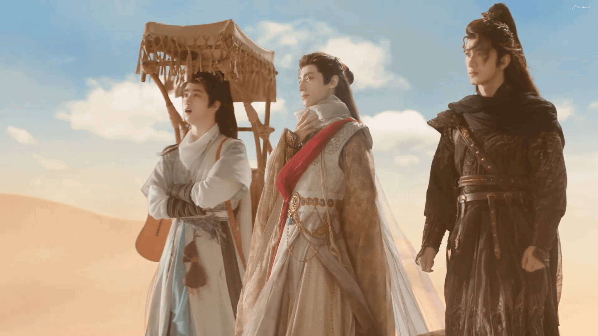 水龙吟三人小分队很像去西天取经的水龙吟 水龙吟三人组站在沙漠背景下,简直就像是取经的队伍!唐俪辞的装扮太有气势,罗云熙拿着拐杖,大家都像准备上路一样,帅气又独特。