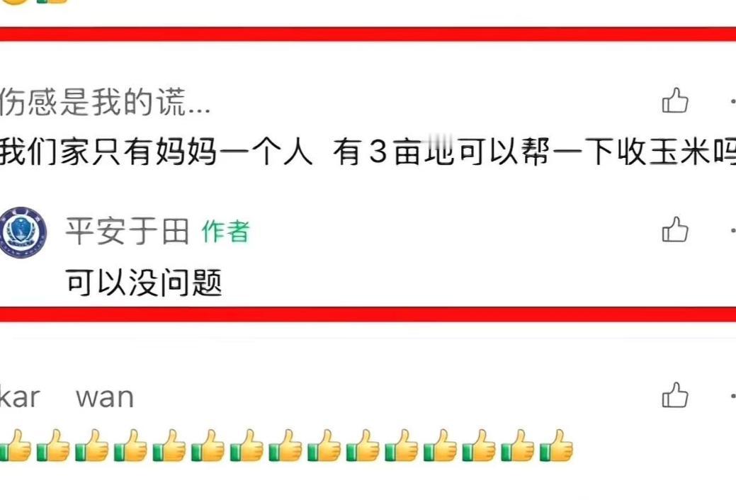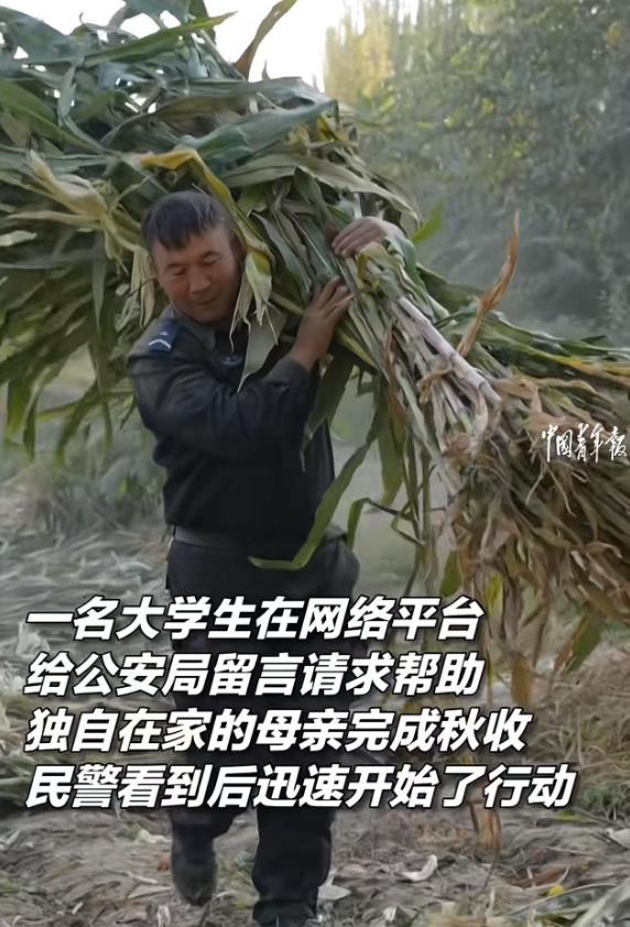 “这个派出所火到中国青年报!”大学生在外地上大学,担心母亲一人难以完成秋收,尝试给于田县民警留言求助,结果派出所的做法感动了全网!网友:为人民服务这几个大字在于田公安这里具象化了! 远在外地读大学的小李盯着手机里的天气预报,家乡于田县的玉米该熟了,母亲年纪大,两亩多地的玉米秆能没过膝盖,往年都是全家上阵,今年就她一个人。 小李在朋友圈、微信群求过帮,没得到实在回应,抱着试一试的想法,点开于田县公安局某派出所的公众号,敲下几行字:“警官您好,我妈一个人在家收玉米,我实在放心不下……”他没抱多大希望,这毕竟是家务事。 没想到消息发出去没多久,民警就打来了电话,“你安心读书,你妈妈这边我们来帮!”这句话让小李悬着的心落了地。 第二天大清早,5名民警扛着镰刀、背着编织袋,准时出现在小李家的玉米地。 晨露还沾在玉米叶上,带着凉意,民警们撸起袖子就分工干活:有人弯腰割秆,刀锋划过秆子发出脆响;有人蹲在地上掰玉米棒,手指蹭得发黄也不停;还有人把装满的编织袋扛到地头,脚步踩在田埂上稳稳当当。 小李的母亲拎着茶壶过来,想给他们倒杯水,民警们笑着摆手:“阿姨,您歇着,我们快得很!”阳光慢慢爬高,晒得人额头冒汗,汗珠顺着民警的脸颊往下淌,滴进泥土里,没人停下手里的活。 旁边田里的乡亲路过,凑过来搭话:“这警察同志真是实在,比自家亲戚还上心!”民警们只是咧嘴笑,手上的动作没慢半分。 一整天忙下来,两亩地的玉米全收完了,还帮着运回家码得整整齐齐,像座金黄的小山。 民警特意拍了段视频发给小李,画面里母亲站在玉米堆旁,笑着比出“OK”的手势,眼角的皱纹都舒展开了。 他们还给老人带了些生活用品,临走时说:“以后有难处就找我们,我们就是你的家人。” 小李把这段经历发到网上,很快炸了锅,网友们盯着视频里民警们忙碌的身影,纷纷留言:“这才是真・人民警察,把‘为人民服务’干到了实处”“制服穿在身,干活接地气,太暖了。” 其实这哪是什么惊天动地的大事,就是帮老百姓收了回玉米,可偏偏就是这样的小事,最能戳中人的心, 现在通信发达了,大家盼的不是冷冰冰的回复,是真能解决问题的实在行动,于田县的民警们没推诿、没敷衍,用镰刀和汗水,把“为人民服务”这几个字从墙上的标语,变成了田间地头看得见的温暖。 基层民警的担当,从来都藏在这些细碎的日常里,不是只有抓坏人算办事,帮老人收庄稼、解年轻人的牵挂,同样是守护。 这份跨越千里的援手,解了大学生的后顾之忧,更让全网看清:真正的守护,就是把老百姓的每一件“小事”都当成“大事”来办。 那么你对这个事情有什么看法呢?欢迎在评论区留言。