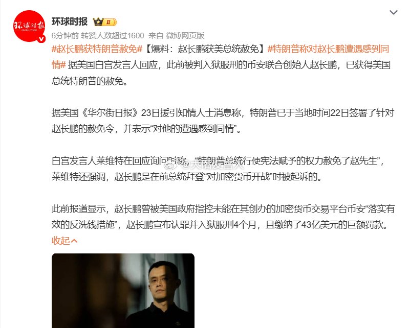 特朗普称对赵长鹏遭遇感到同情,热点观点