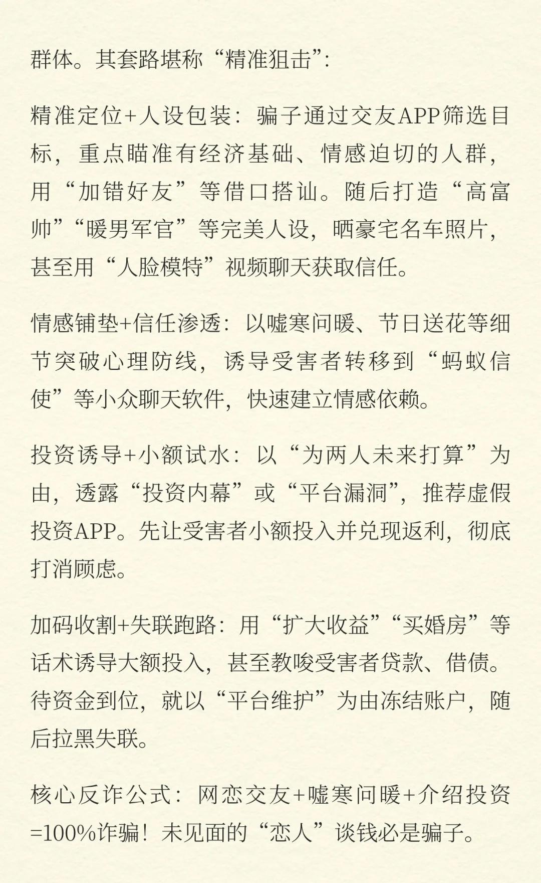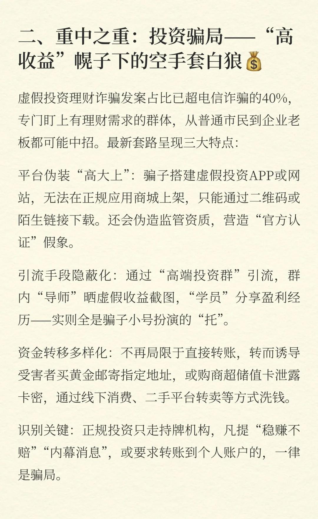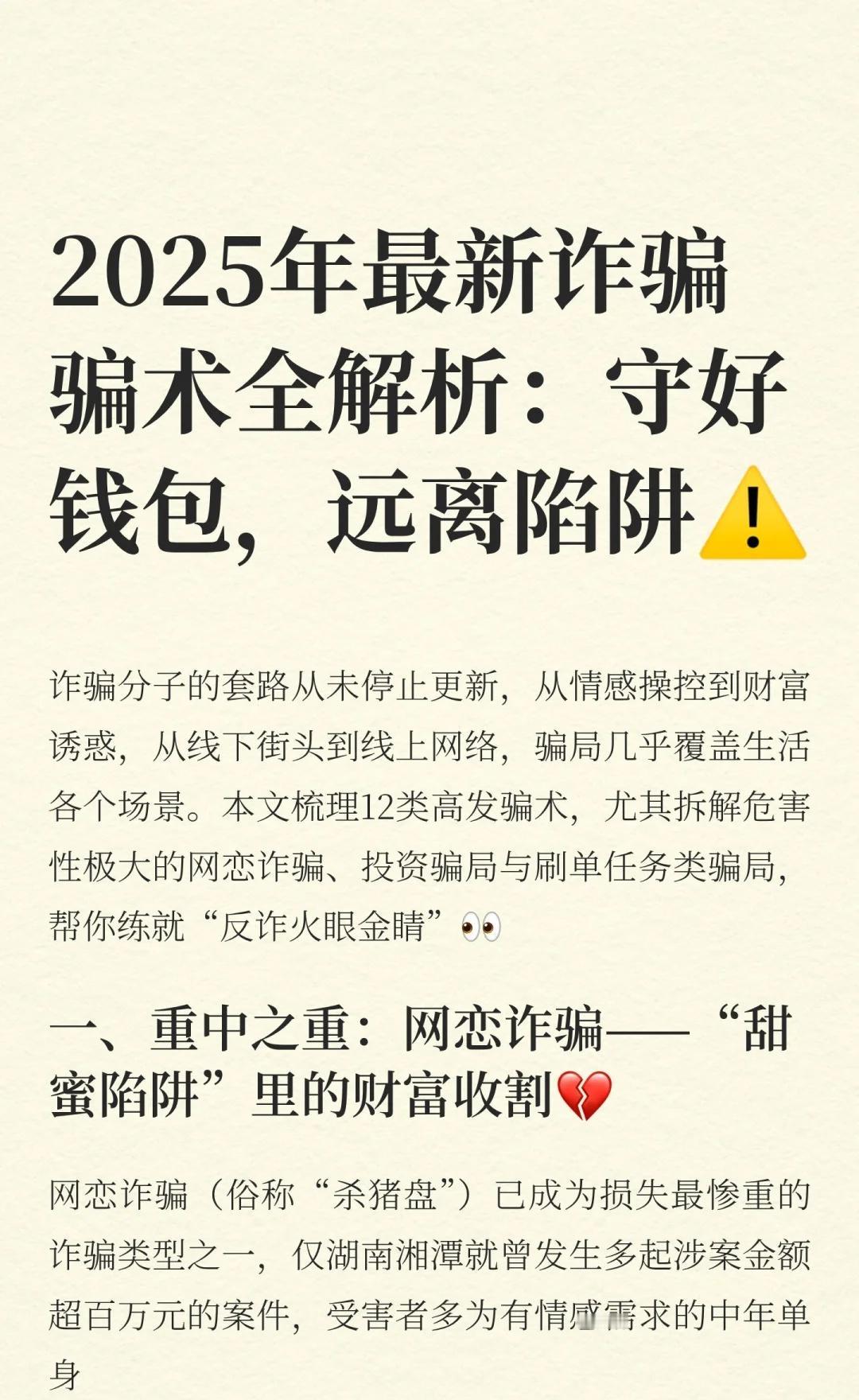 2025年最新诈骗骗术全解析 网恋诈骗、投资骗局、刷单任务类骗局等高发骗术,通过情感操控、虚假投资、刷单返利等手段,诱骗受害者上当。本文详细拆解这些骗术,教你识别并避免上当,守住资金、信息和求助底线,筑牢反诈防线。防骗指南 反诈开学第一课 远离诈骗陷阱 反网络诈骗 注意防诈骗 防骗 热点 保护个人信息 刑事立案