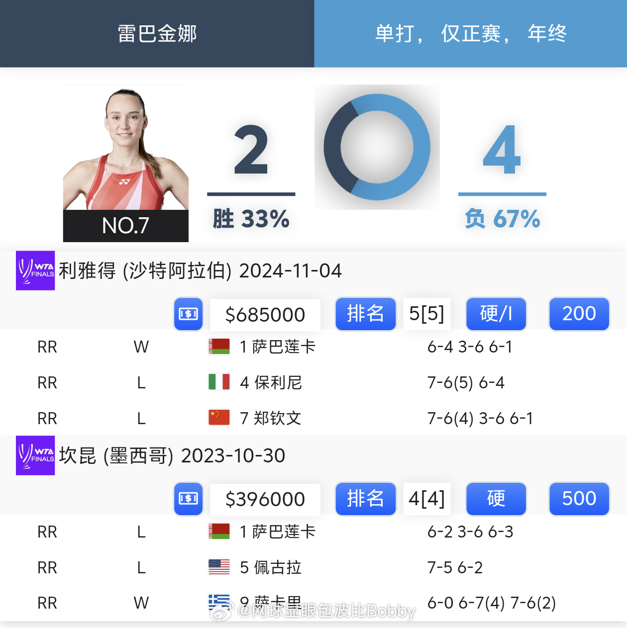 莱巴金娜入围年终总决赛WTA年终总决赛阵容出炉利雅得WTA年终总决赛wta[超话]
