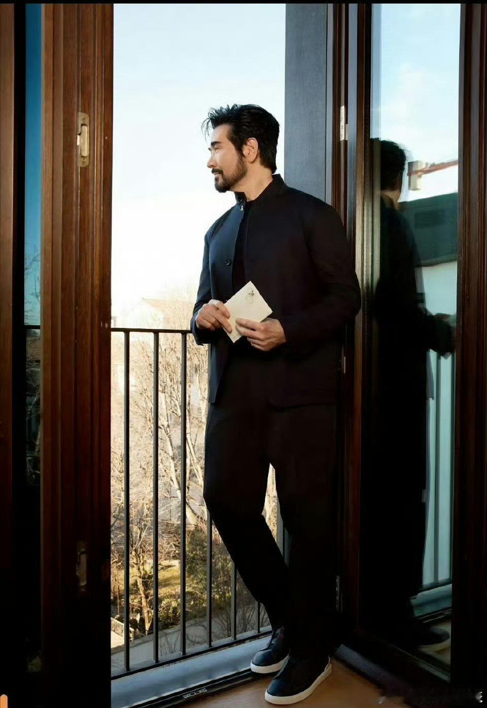 费翔男人装拍摄现场花絮 镜头下的费翔,每一个动作都散发着成熟男人的韵味,黑西装衬