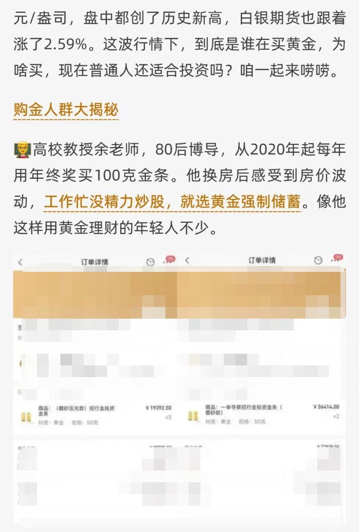 前两天看到武汉一个教授,每年买金条强制储蓄,我看了只觉得,我不仅没这个实力买,也没这个精力守着这些金疙瘩。买金条不仅贵,存放、交易也是问题,这几天真金被调包的案例太多了。年轻人成线上黄金投资主力,一方面是因为黄金ETF、积存金这些,买卖方便,另一方面就是门槛低。1元、1克起买,就算本金不是特别多,也能尝试分散配置、长期定投的方法去投资黄金,还是线上黄金更适合普通人。黄金投资的三大有效姿势