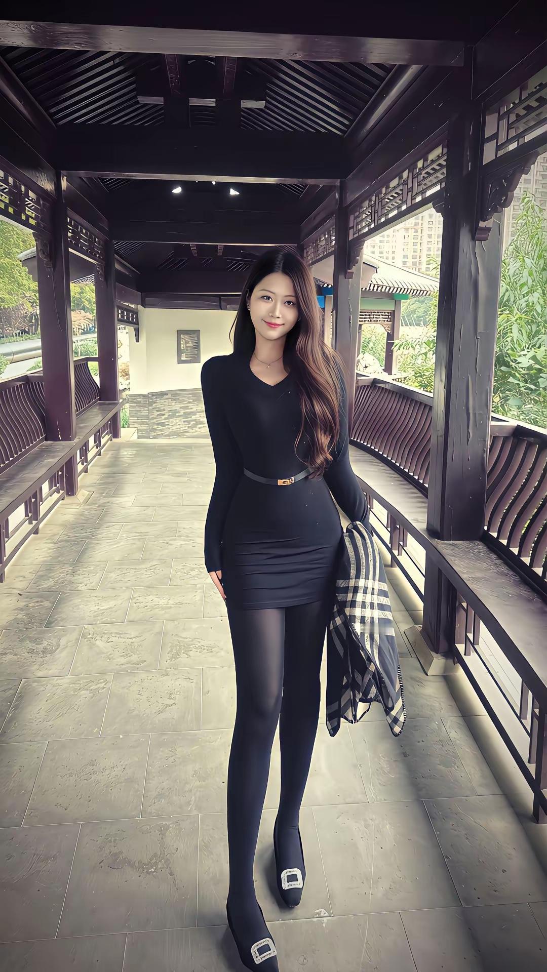 优雅黑裙,都市时尚,自信微笑气质黑裙搭配
