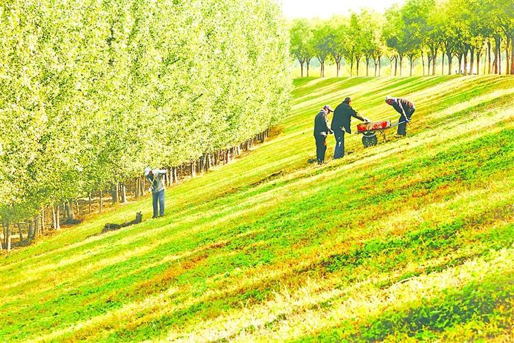 冬季即将来临,河务段组织工人提前巡查、修补河堤路面裂缝,做好防冻防损准备工作,以确保黄河大堤始终处于良好运行状态,为黄河安澜筑牢坚实防线。图为10月21日,高青县大刘河务段养护工人正对黄河大堤进行巡查与维护作业。