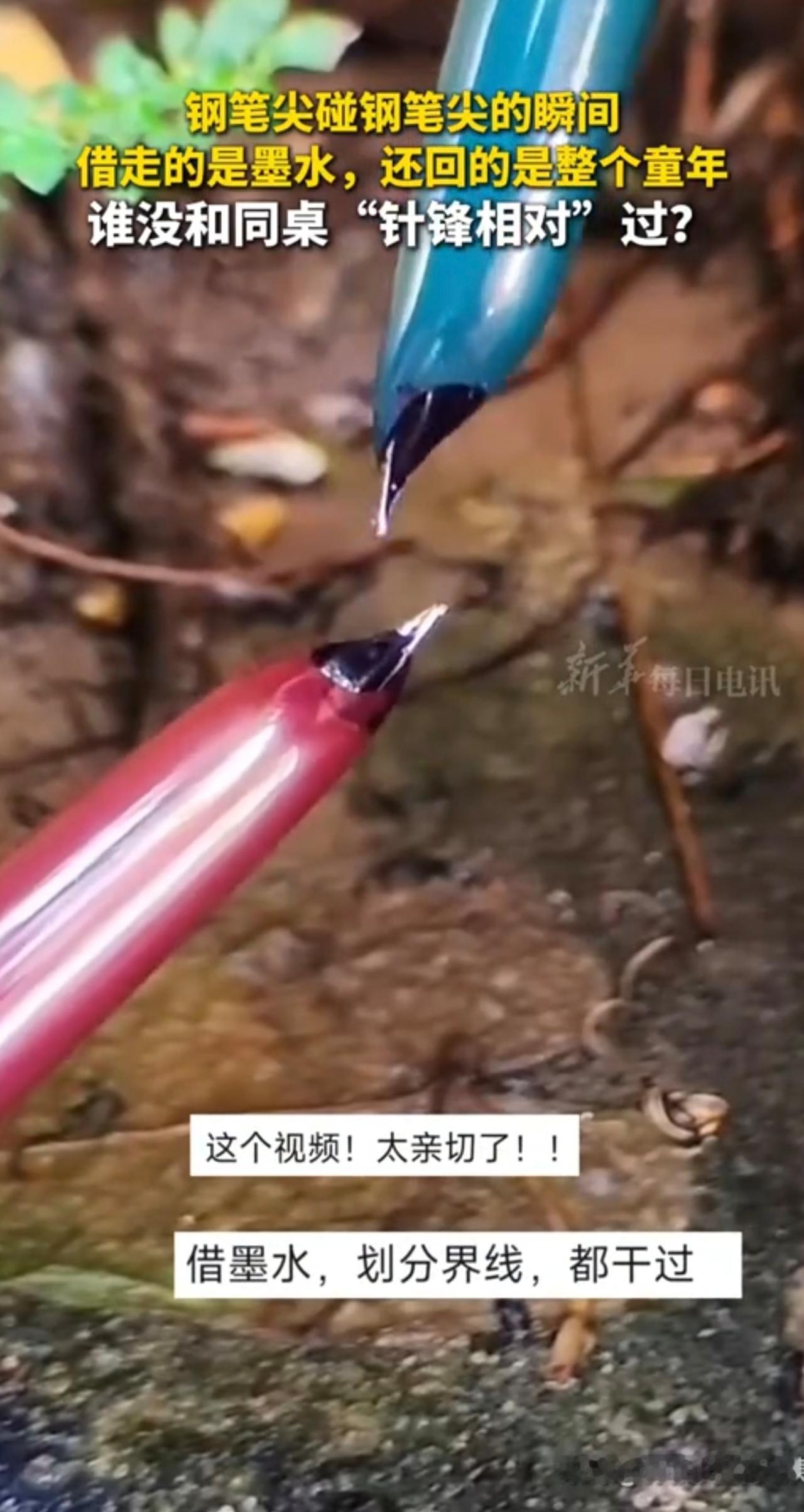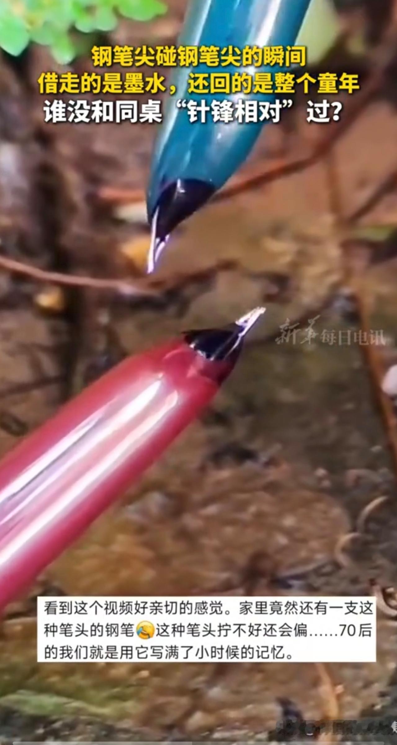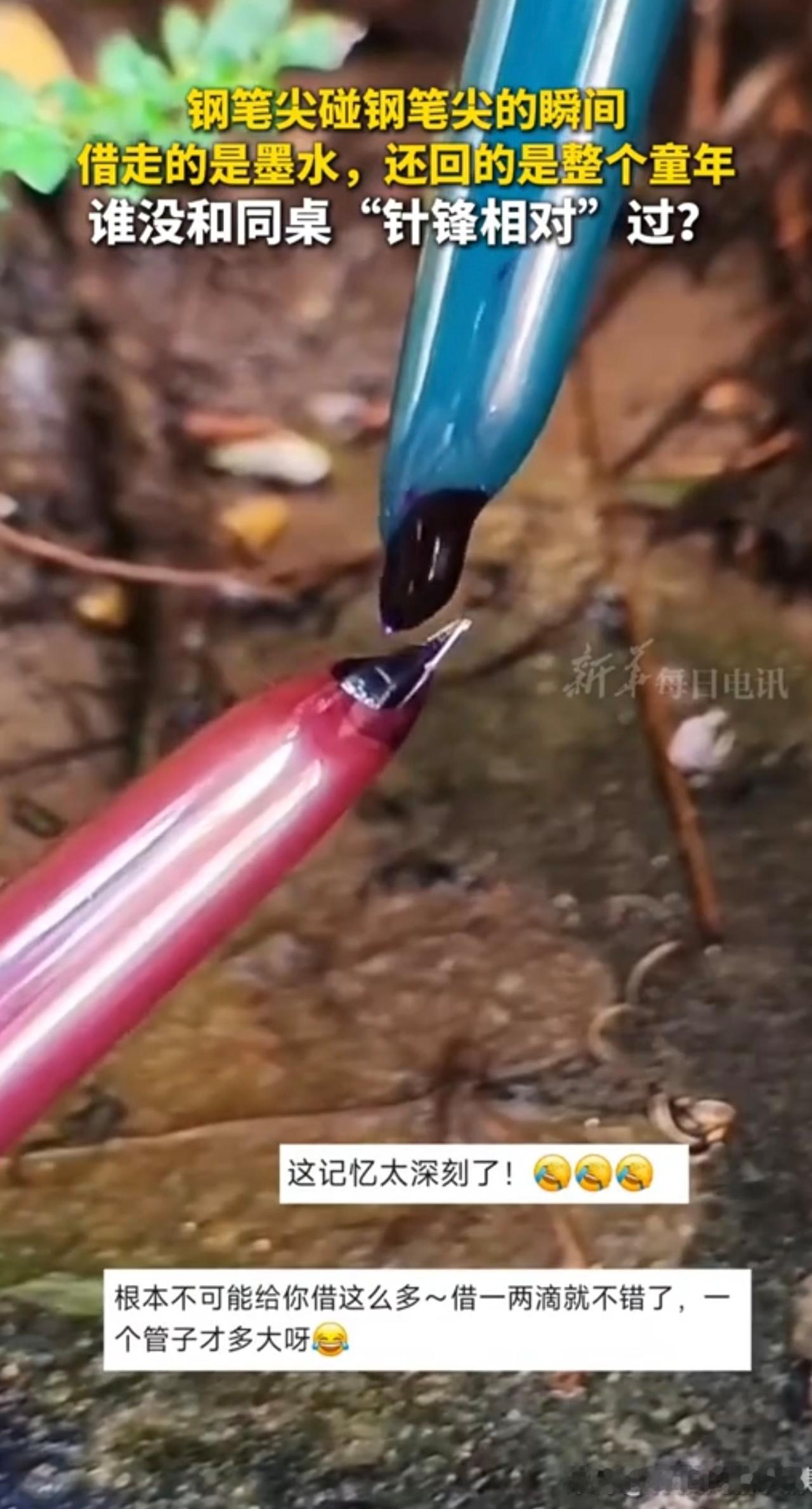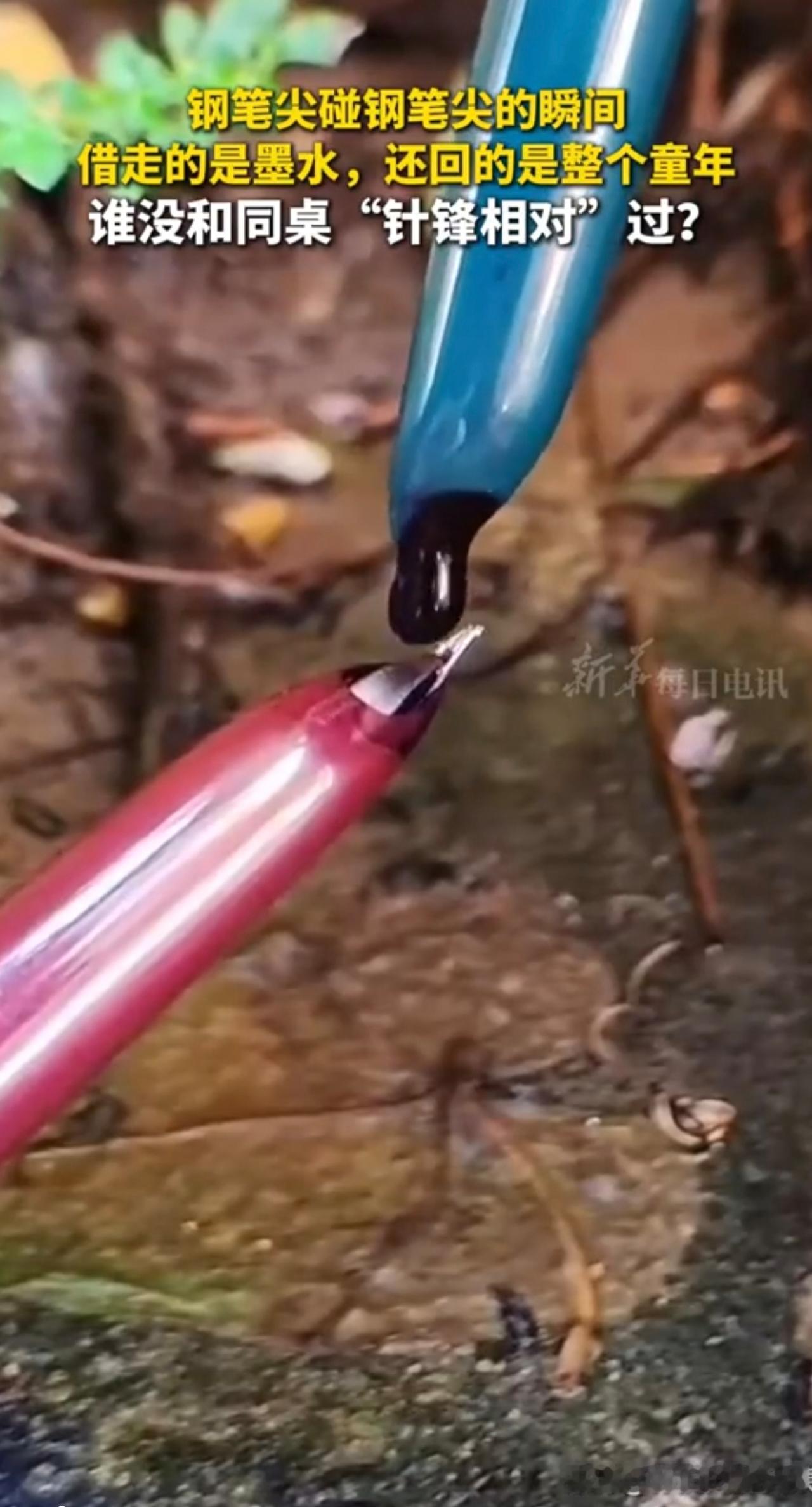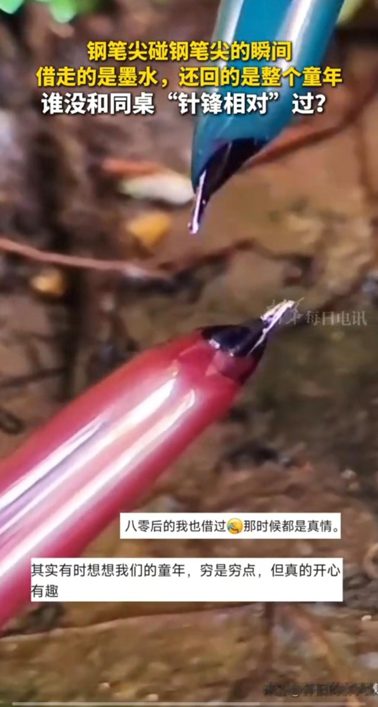 | 钢笔尖碰钢笔尖的瞬间。借走的是墨水,还回的是整个童年。