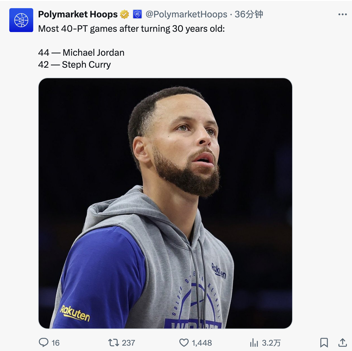 30岁之后40+比赛的场次最多的,第一乔丹42场,第二库里40场