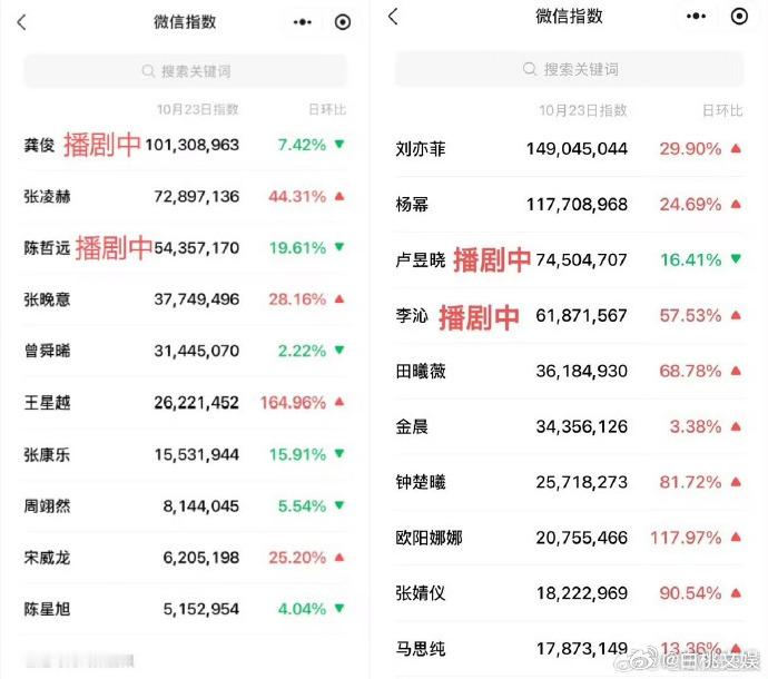 刘亦菲与杨幂的微指因 VOGUE 相关内容达到 1 亿,龚俊的微指数据也同步破亿