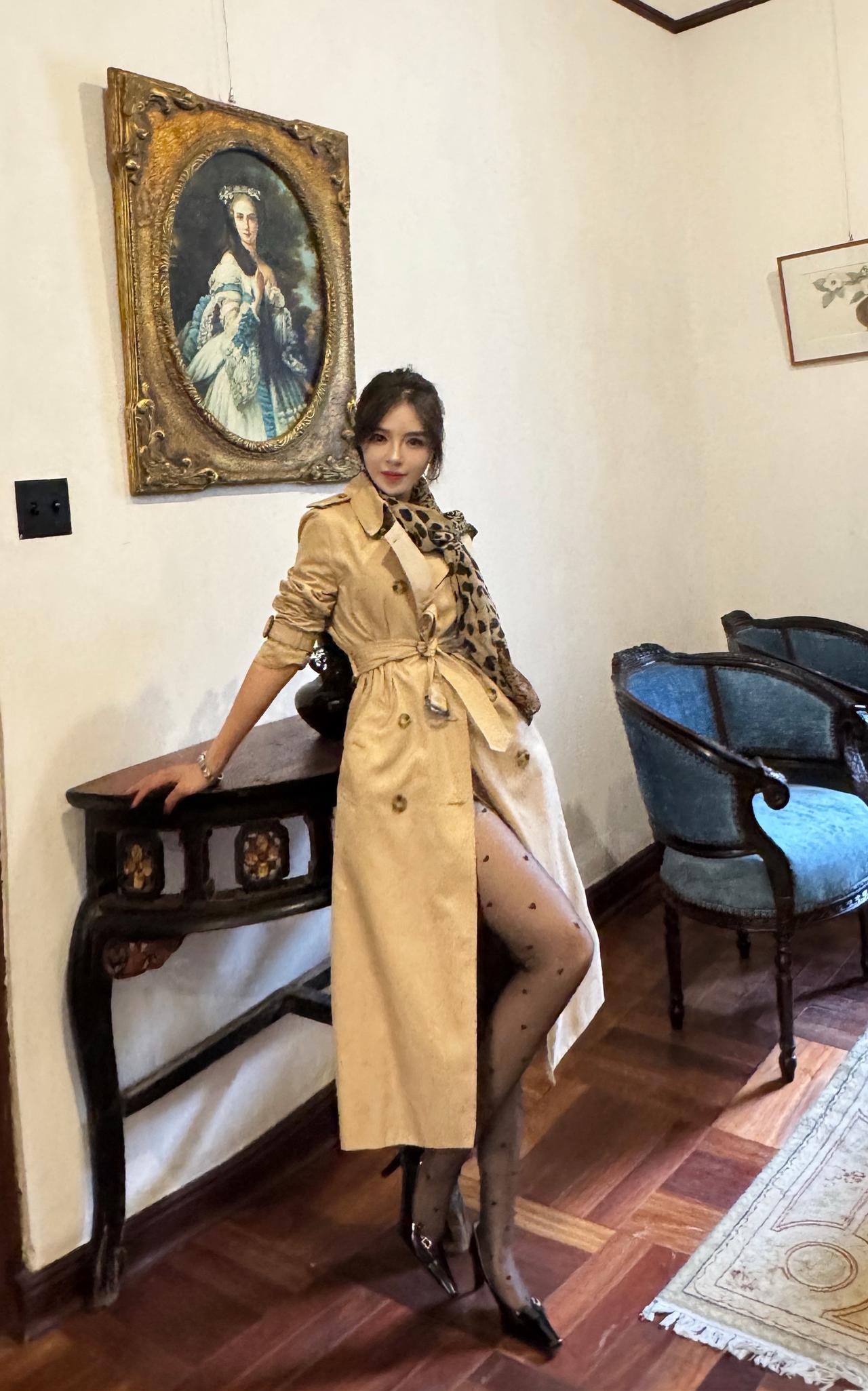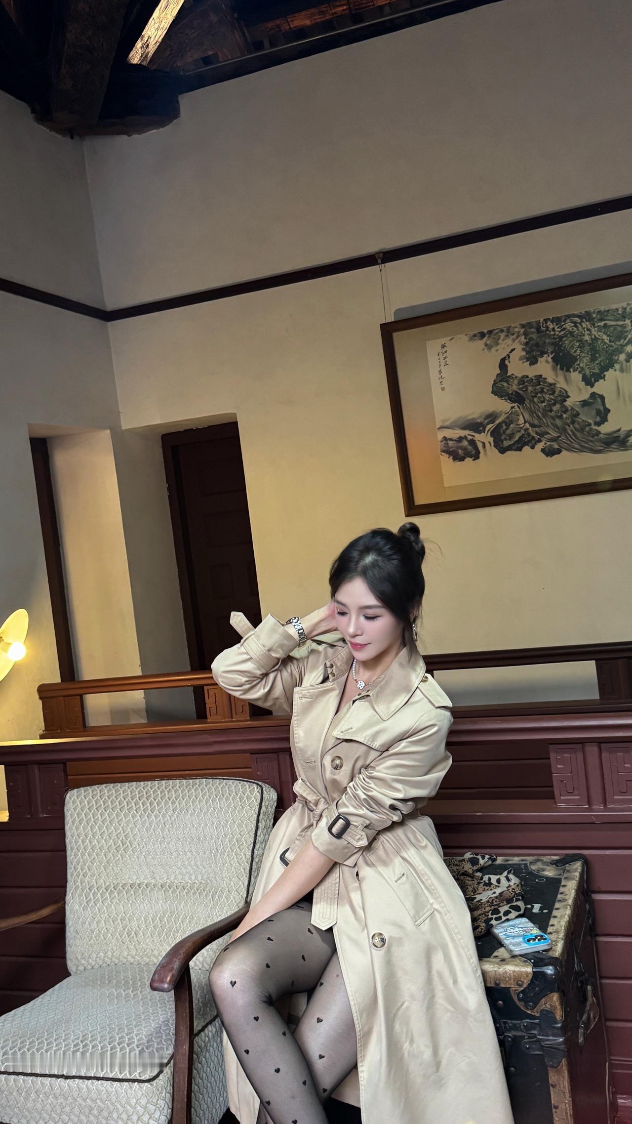 终其一生 人都在寻找一个一起吃饭 好好说话的人风衣穿搭 优雅气质 古着vintage 黑丝