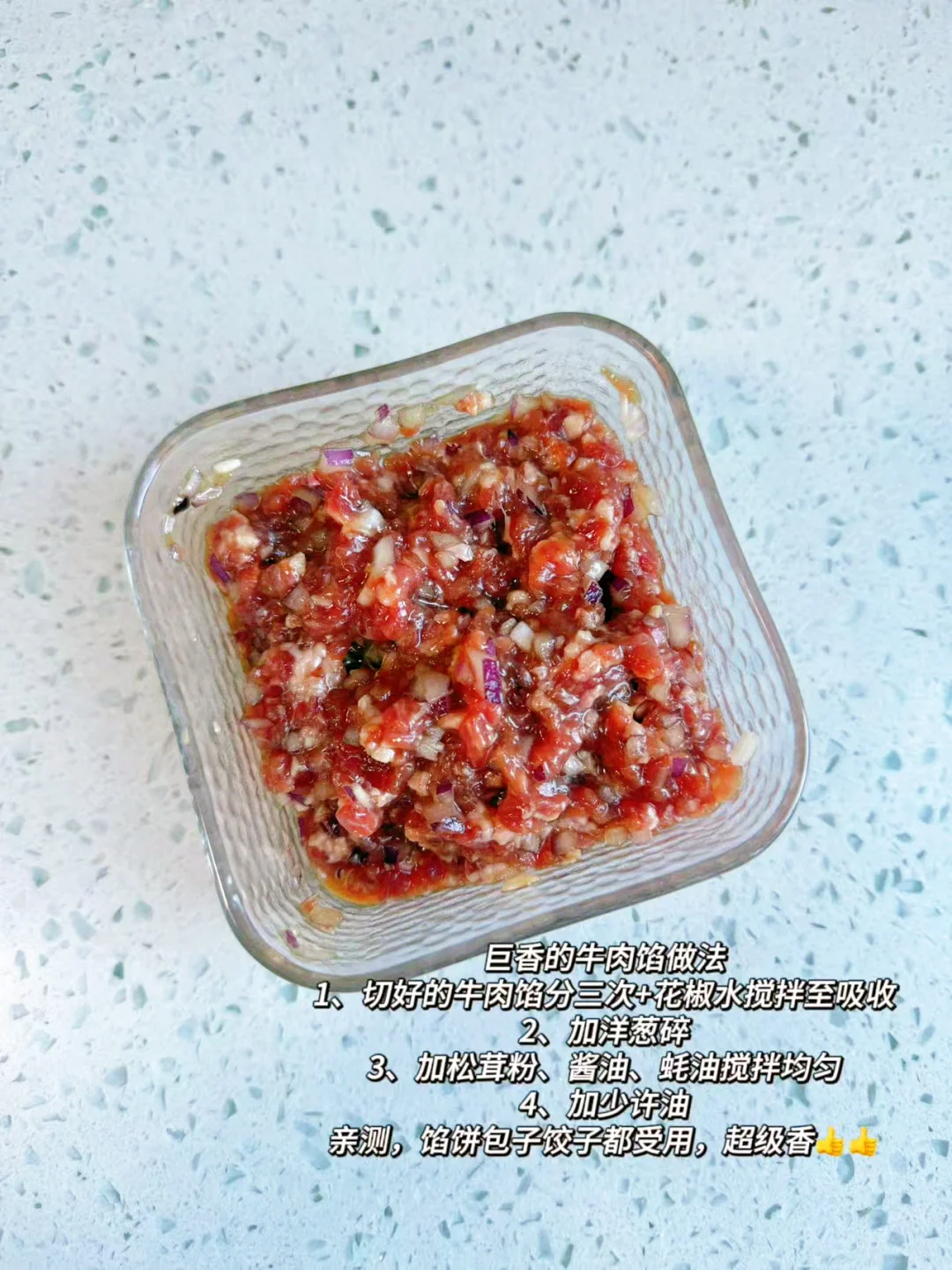 姐妹们,最近天气渐渐冷了,食欲大好,我的冬日必备美食还得是这个牛肉馅饼,真的太香了🤤🤤 最重要的是简单便捷,不用和面不用揉面,可以前一晚把馅料调好,放在冰箱冷藏。早上起来包好牛肉馅饼直接烙,省时又省力,大人孩子都爱吃,我家森宝一吃起这个比我都能吃~