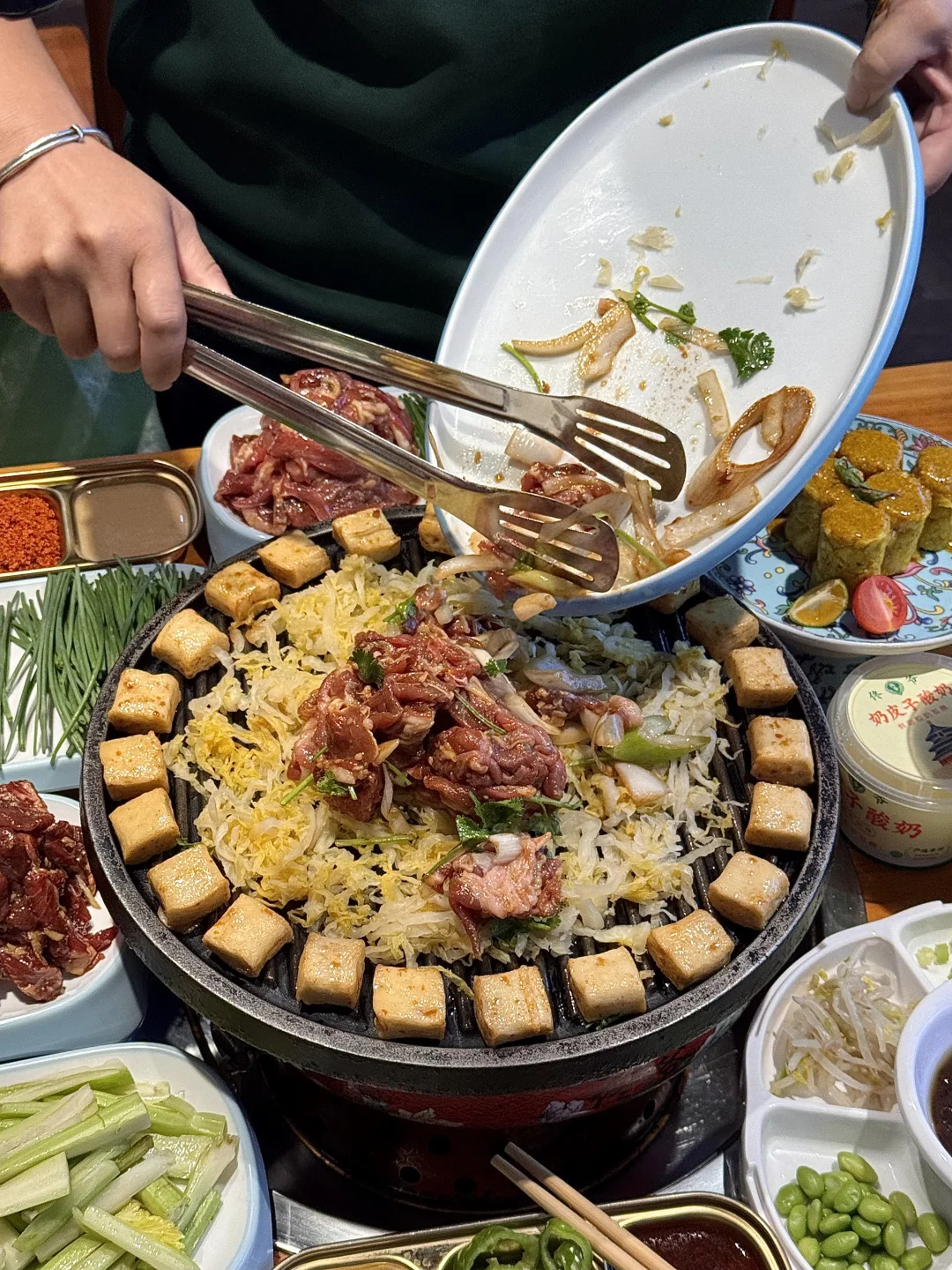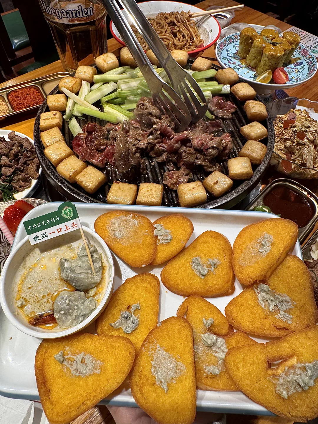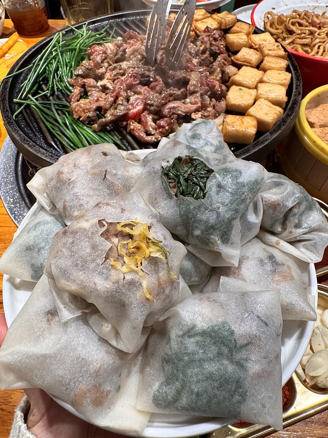 啊啊啊终于在杭州吃到奶皮子冰糖葫芦了! 大片奶皮子+青提冰糖葫芦! 裹上一层薄薄的糖~又香又奶😭 还有北京炙子烤肉 不沾酱都好好吃!!奶皮子、沙葱牛肉、奶卷…感谢网友指路!叫:佟爷)