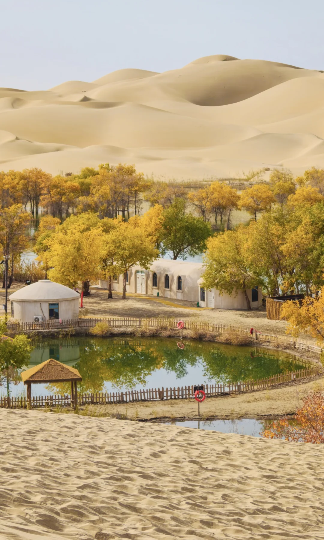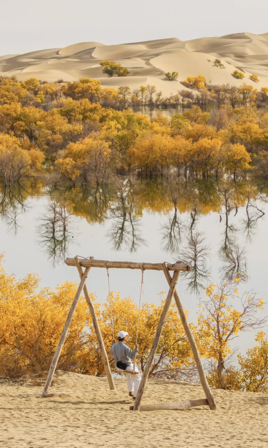 被这片胡杨林围起来的沙漠绿洲震撼到