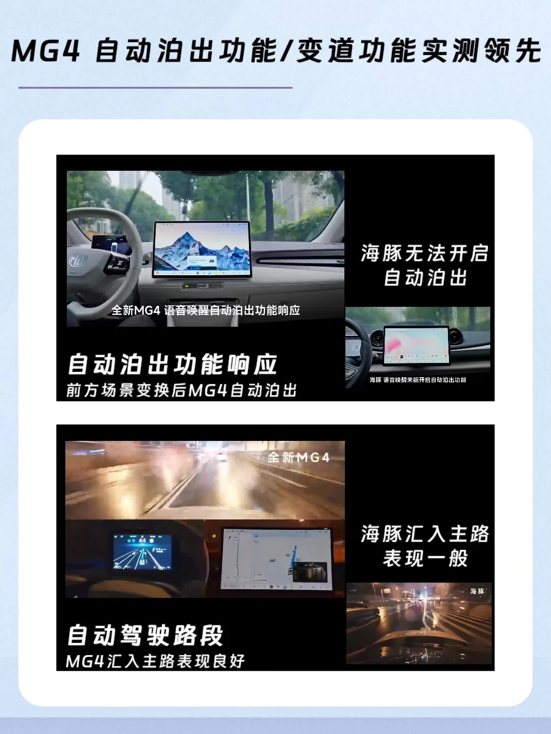 搭载地平线J6E芯片的"博弈大模型"更懂中国路况,高速NOA比同级别的友商车型🐬稳太多,可以预测路上其他车辆的行驶意图,10码以上就能拨杆变道。智能泊车更是降维打击——不仅扫车位更快、能停车位更多,关键是🐬的自动泊车,必须先用泊入才能自动泊出,而MG4不需要泊入记录,就能直接语音召唤泊出,更灵活方便✔️。
