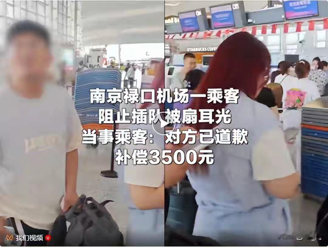 南京禄口一夫妻🎎插队还不听人劝,还扇人耳光陪3500元 针对此事,大家怎么看?