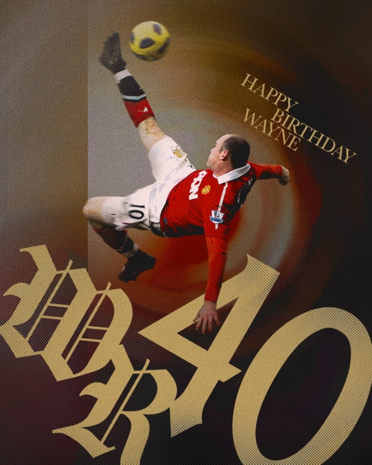 直播吧10月24日讯今天是曼联传奇球星韦恩-鲁尼的40岁生日,曼联官推晒出海报发文为他送上祝福。