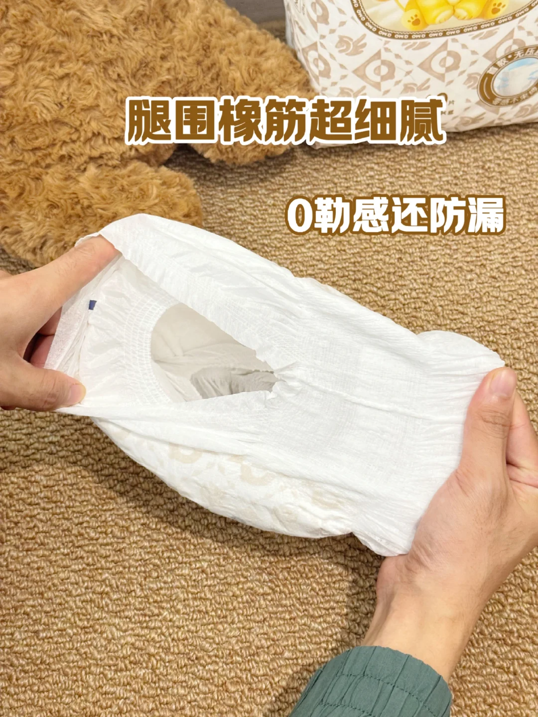 腿围和腰围的橡筋都很细腻,摸起来也是软软的,不勒肚肚和大腿,对胖宝宝也友好![点赞R]关键裁剪很贴合宝宝臀腿曲线,动起来也不会移位,不管宝宝各种姿势玩耍,都不会漏!