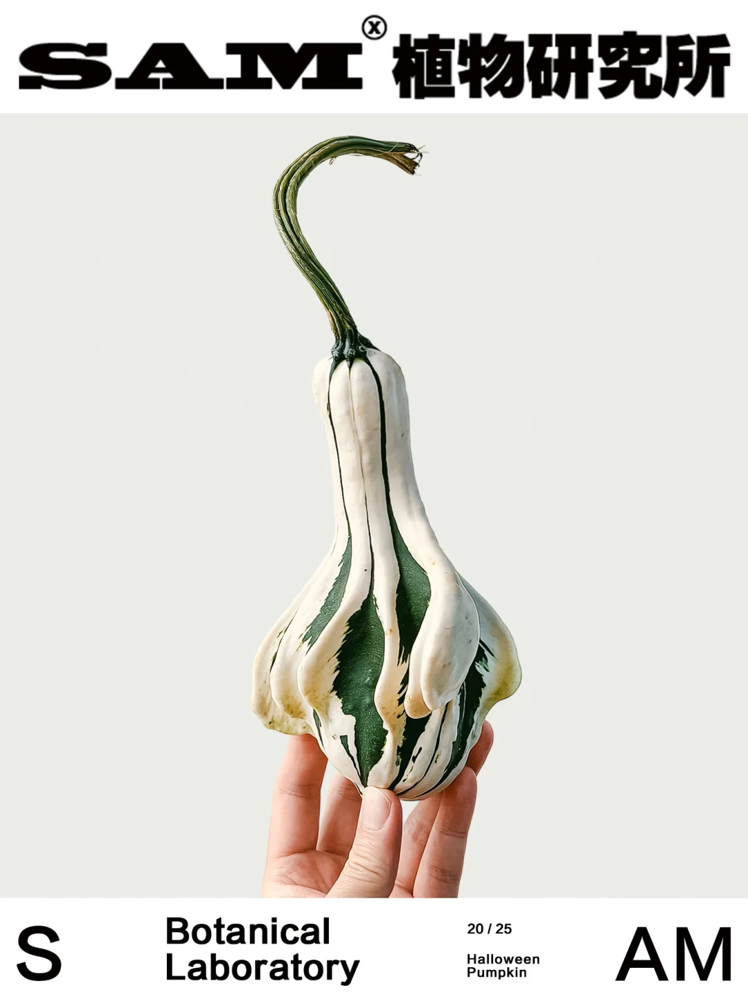 💚Tips:当十月的秋风吹起,欧美国家的街头巷尾、居家院落开始被各式各样的南瓜装饰点缀。每年的10月31日万圣节(Halloween),按照传统习俗,这天夜晚是纪念离世的人的时刻,人们会驱赶邪魅干扰,同时以食物祭拜祖先的亡灵以及逝去的善良灵魂,祈祷平安渡过严寒漫长的冬季。万圣节最经典的象征——南瓜灯,其实有着有趣的演变史。在发现美洲之前,欧洲人会用芜菁(brassica rapa),也就是我们常吃的大头菜来做“大头菜灯”。后来移民到美洲以后,发现那里的南瓜更软,而且个头儿更大,雕刻起来要比大头菜容易多了,于是南瓜替代了一切,成就了今天的“南瓜灯”。在众多南瓜中,一种形态奇特、线条不规则的墨西哥葫芦南瓜正成为万圣节装饰的新宠。它们最引人注目的特点在于其令人惊叹的多样性。与传统的万圣南瓜灯“Jack-o’-Lantern”相比,墨西哥南瓜无须雕刻,单凭造型与纹理,就足以营造出梦境般的奇幻氛围。它不像经典的橙色南瓜那样圆润规整,从深绿色、黄色到褐色的丰富色彩,有的像弯月、有的似鹅颈、有的呈波浪状球形,正是这种形态夸张、色彩奇异的外表,让它在园艺与节日装饰中大放异彩,更像是从童话或巫师的温室里逃出来的“魔法种子”,仿佛专为万圣节而生的魔法植物。搭配上小盲盒,挂上纱网、蜡烛与干树枝,整个空间就变成了自然与幻想交织的“秋日异想世界”。