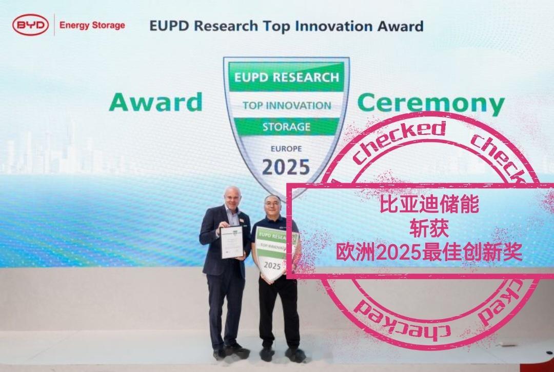 比亚迪 储能2025欧洲户储装机量No.12025欧洲储能最佳创新奖