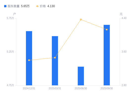 日期A股户数(户)流通A股户均持股数(股)户均持股市值(万元)2025-09-3056517118453.2348.922025-06-3050285133133.5658.182025-03-3154837122082.1942.242024-12-3155583120443.6840.952024-09-3057129117184.2941.832024-06-3060837110041.9333.182024-03-3161436108969.0234.162023-12-3164691103486.1328.302023-09-3064958103060.3129.632023-06-3064919103122.2236.76