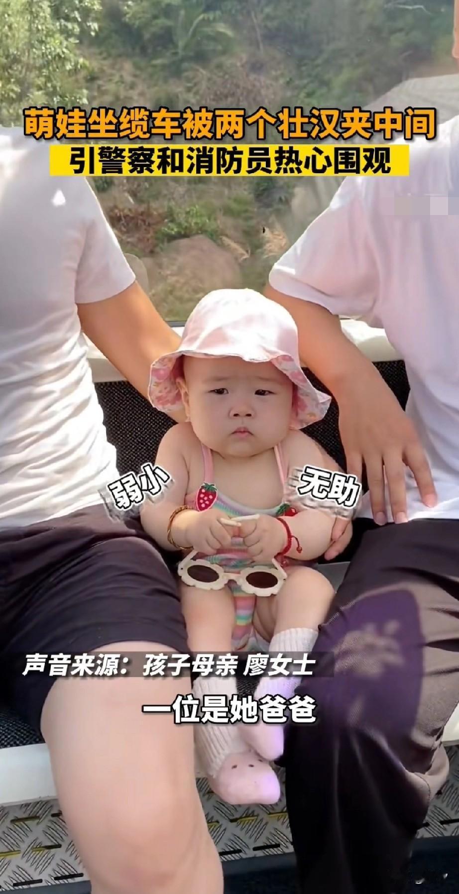 近日杭州一位可爱的小宝宝, 被两个壮汉强制体验缆车, 一位是他的爸爸, 一位是他的叔叔, 缆车上升的时候, 小宝宝有点害怕, 拿着眼镜的手不自觉捏了很紧, 眼神也是非常的呆萌无助, 虽然不想坐缆车, 但是有两位保镖同行, 他也无可奈何, 在自己最无助的时候遇到了最体贴的爸爸和叔叔, 只能坐在原地不敢说话, 一路上很沉默, 安静又无助的小眼神, 太可爱了, 不知道尿不湿有没有湿, 比事件一经曝光, 立刻引起了当地消防员和叔叔围观, 当地帽子叔叔表示感觉你好像被绑了, 但是我实在没忍住不笑, 消防员叔叔也表示你给个眼神叔叔马上定位你, 还有帽子叔叔表示想笑, 但是帽子叔叔好像应该严肃吧! 小朋友这视频确实太好玩了, 有一种反差感, 大家觉萌娃被两个壮汉夹中间那无助的表情好玩吗? 搞笑图文 杭州爆料 萌娃 家有萌娃 高空缆车体验 悬空缆车