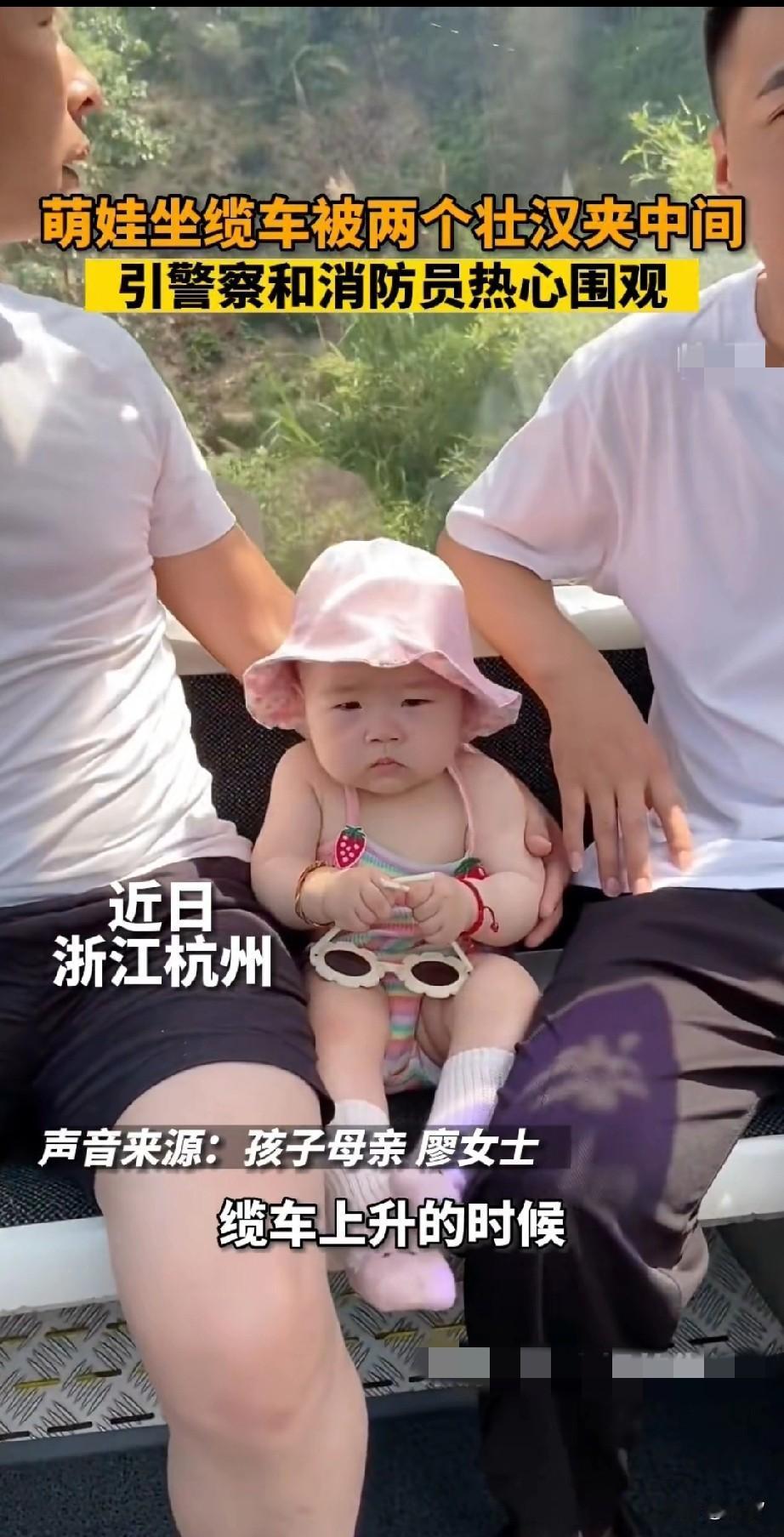 近日杭州一位可爱的小宝宝, 被两个壮汉强制体验缆车, 一位是他的爸爸, 一位是他
