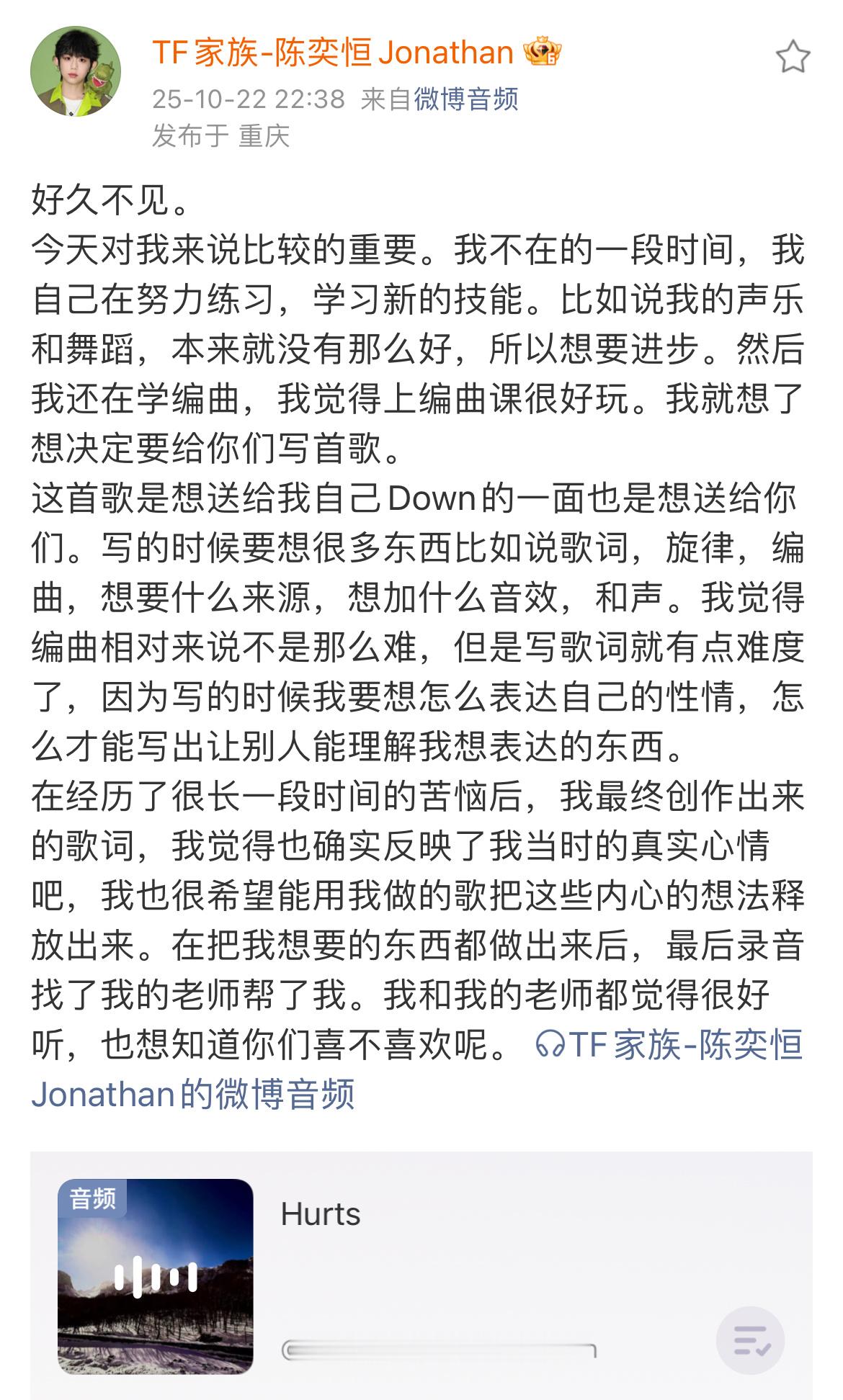 陈奕恒Hurts破千万播放 陈奕恒新歌Hurts已经破一千万播放了!越来越进步的