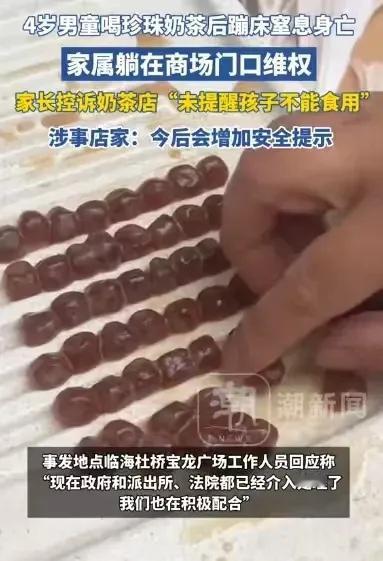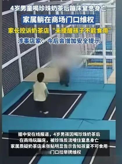 浙江一名4岁孩子喝了一口珍珠奶茶后,被家长允许去商场蹦蹦床玩耍,不料珍珠反流噎住气管,最终窒息身亡。事后家长举牌躺商场门口维权,质疑奶茶店未张贴“孩童不可喝珍珠奶茶”的告示,将责任指向商家。此事引发全网热议,有人同情家长,有人指责家长监护失职。本文结合《民法典》条款拆解各方责任,厘清法律边界,普及未成年人监护及商家警示义务的相关法律知识。 一、悲剧始末:一口奶茶,一场蹦跳,一个家庭的破碎 谁能想到,一口普通的珍珠奶茶,会成为夺走4岁孩子生命的“杀手”? 事情发生在浙江某商场,当天家长买了一杯珍珠奶茶,4岁的孩子盯着奶茶直咽口水,家长没多想就给孩子喝了一口。孩子喝完美滋滋地奔向旁边的蹦蹦床,家长看着孩子蹦蹦跳跳的开心模样,还在一旁笑着拍照,压根没意识到危险正在靠近。 突然,孩子脸上的笑容瞬间消失,双手紧紧捂住喉咙,表情痛苦地倒在蹦蹦床上。家长慌了神,立马冲过去,这才想起孩子刚喝了珍珠奶茶——肯定是没嚼碎的珍珠卡住气管了!周围人赶紧帮忙急救,可无论怎么努力,都没能把那颗致命的珍珠取出来,孩子最终还是没能抢救回来。 4年的朝夕相处,前一秒还活蹦乱跳的孩子,下一秒就没了气息,换谁都接受不了。悲痛之下,家长举着写有诉求的牌子,躺在商场门口维权,把矛头对准了奶茶店:“他们的珍珠又大又黏,一杯里有60多颗,宽度足足一公分,为啥不贴告示说小孩不能喝?” 面对质疑,奶茶店回应:“我们在下单小程序上明确写了,老人和孩子要在监护人看护下饮用,不是没提示啊!”一边是痛失爱子的家长,一边是声称尽到提示义务的商家,这场悲剧的责任之争,瞬间炸了锅。 二、法律解析:三方责任掰清楚,别让情绪盖过常识 很多人纠结“到底谁的错”,其实法律早就把责任划分讲得明明白白,咱们用大白话拆解清楚: 1. 奶茶店:有过错,但不是主要责任 家长质疑“没张贴告示”,奶茶店说“小程序有提示”,这两种说法并不矛盾。根据《民法典》第1165条,行为人因过错侵害他人民事权益造成损害的,要承担侵权责任。 奶茶店的过错在于,提示方式太“隐蔽”——小程序上的文字提示,很多家长下单时根本不会仔细看,尤其在商场这种快消费场景,更该在菜单、杯身贴醒目的警示语,或者店员口头提醒一句“小孩喝珍珠要注意看护”。但反过来讲,奶茶店的提示义务不是“禁止孩童饮用”,而是“提醒监护”,不能把所有责任都推给商家。 2. 蹦蹦床商家:无过错,不用担责 有人会问,孩子在蹦蹦床出的事,蹦蹦床老板没责任吗?答案是:没有。 孩子的死因是珍珠反流窒息,不是蹦蹦床设备损坏导致的磕碰、摔伤,蹦蹦床本身能正常使用,工作人员也没违规操作,完全符合安全规范。所以蹦蹦床商家既没有过错,也和悲剧的发生没有直接因果关系,不用承担任何责任。 3. 家长:监护失职,需承担主要责任 这是最关键的一点!根据《民法典》第1173条,被侵权人对损害的发生也有过错的,可以减轻侵权人的责任。 作为孩子的监护人,家长有两大明显失职:一是4岁孩子吞咽功能还没发育好,珍珠又大又黏,本身就有呛咳风险,家长没提前碾碎或监督孩子嚼碎,就随意给孩子喝;二是明知孩子刚进食,却让他去做蹦蹦床这种剧烈跳跃运动——剧烈震动很容易导致胃里的食物反流,这是基本的安全常识。正是这两个失误的叠加,才酿成了悲剧,家长显然没尽到监护义务,应该承担主要责任。 三、网友吵翻了:同情归同情,责任不能混为一谈 这件事一曝光,评论区直接分成两派,吵得不可开交,观点鲜明到让人一目了然: 支持家长派:同情大于指责,商家提示不到位 - “太心疼家长了,白发人送黑发人,换谁都得崩溃!奶茶店只在小程序提示,老人小孩哪会看啊,贴个显眼告示能花多少钱?” - “珍珠那么大一颗,又黏糊糊的,别说4岁孩子,就算是大人咽快了都可能卡到,商家就该明确标注‘12岁以下孩童不建议饮用’!” - “家长肯定也不想发生这种事,维权只是想讨个说法,没必要揪着他们的失误往死里骂。” 指责家长派:监护失职才是主因,别甩锅 - “4岁孩子喝珍珠奶茶还去跳蹦床,这家长心也太大了吧?基本的安全常识都没有,自己的错为啥要怪奶茶店?” - “小程序有提示已经尽到义务了,总不能让商家跟着每个顾客后面提醒吧?监护人的责任才是最大的!” - “现在很多家长总觉得‘出事就是别人的错’,却忘了自己才是孩子安全的第一责任人,这起悲剧就是惨痛的教训。” 最后想问大家:你觉得奶茶店应该赔偿吗?如果赔偿,该承担多少比例的责任?家长的监护失职,是否应该减轻商家的赔偿责任?欢迎在评论区说出你的看法!