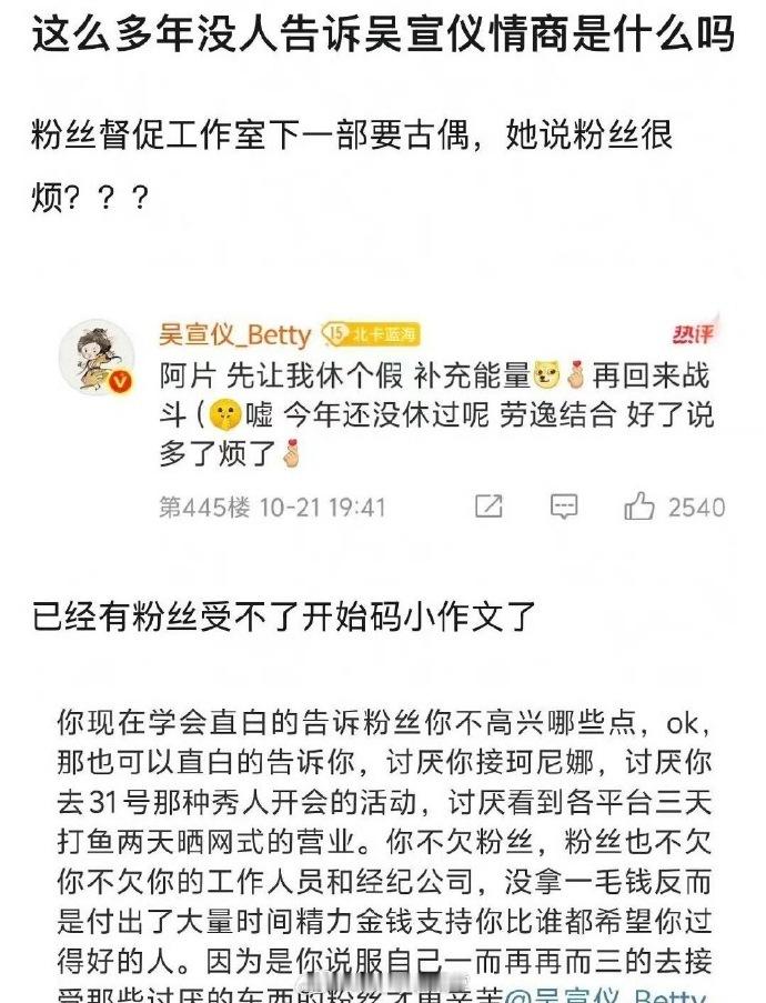粉丝催吴宣仪搞事业吴宣仪:说多了烦了不是以前说搞事业没时间谈帅哥立人设的时候了